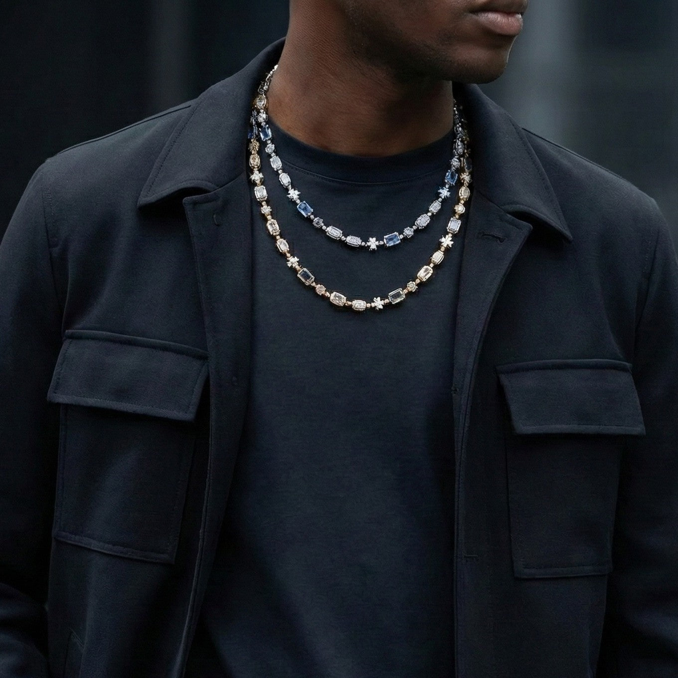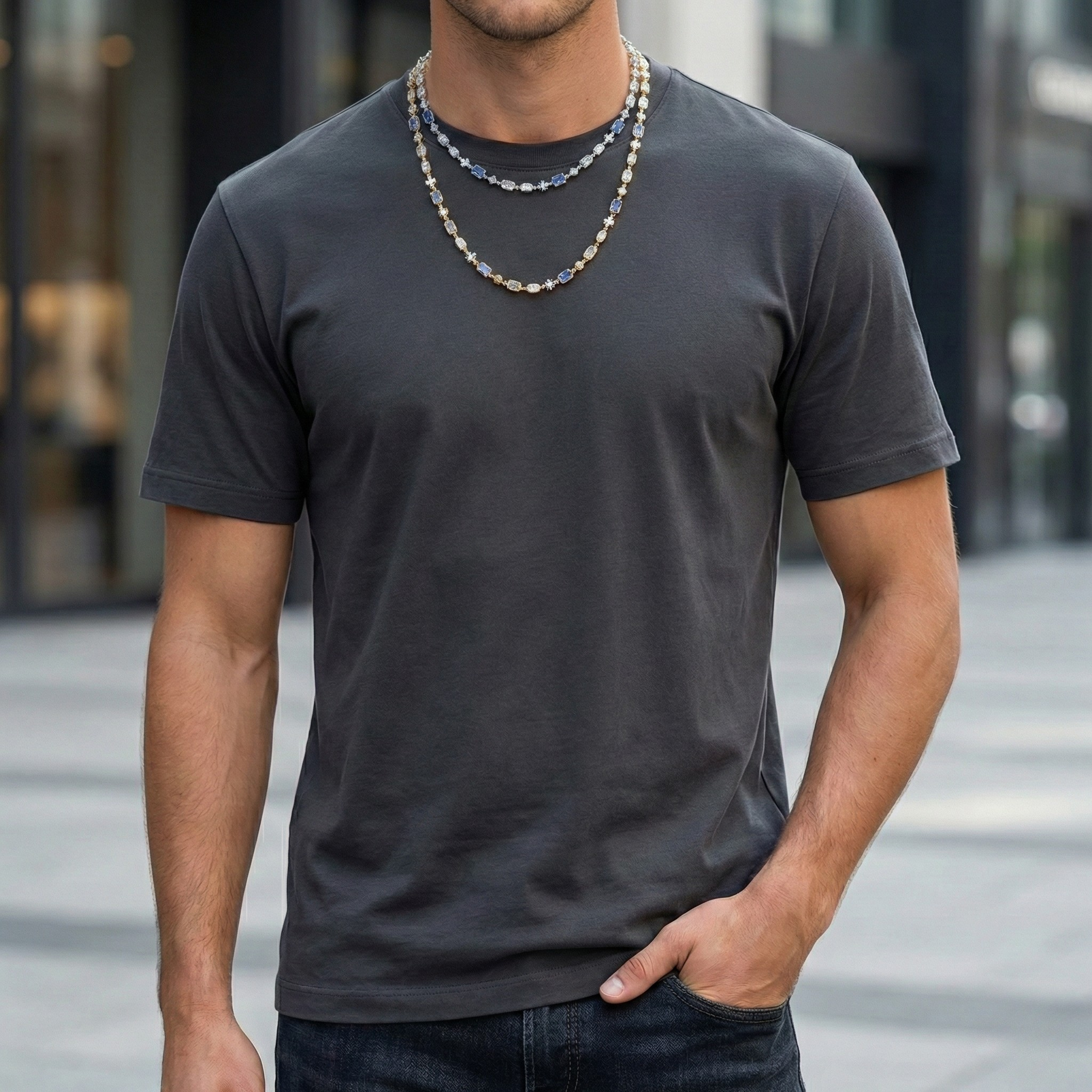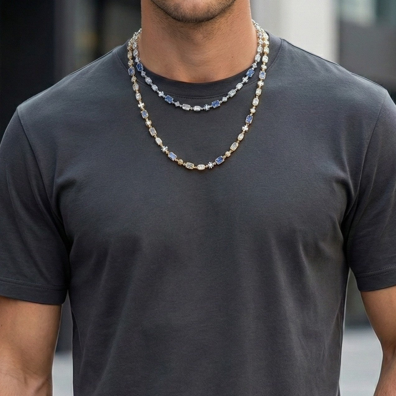 6mm 18K Gold Cross Chain with Diamond Blue Gemstone & Opal Links