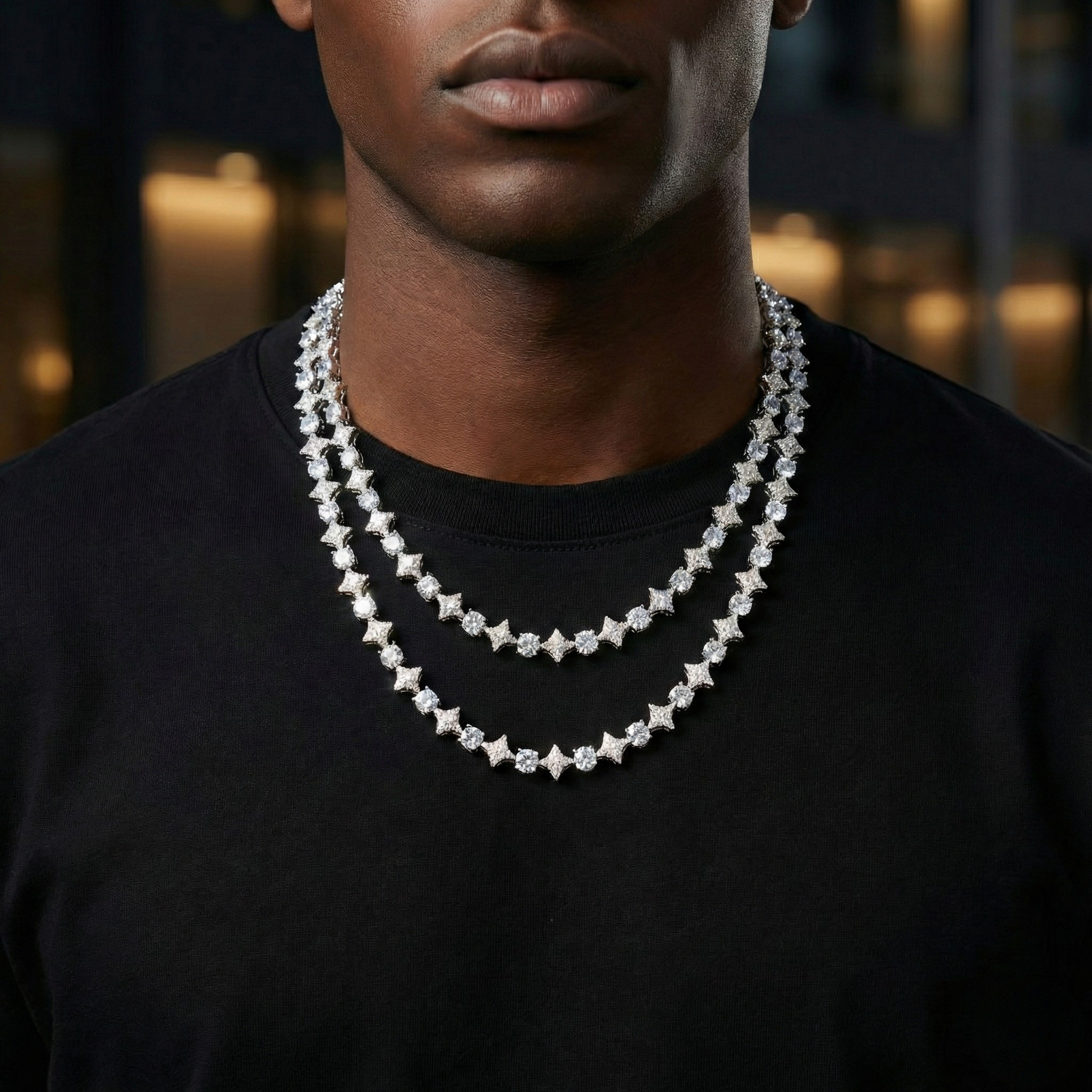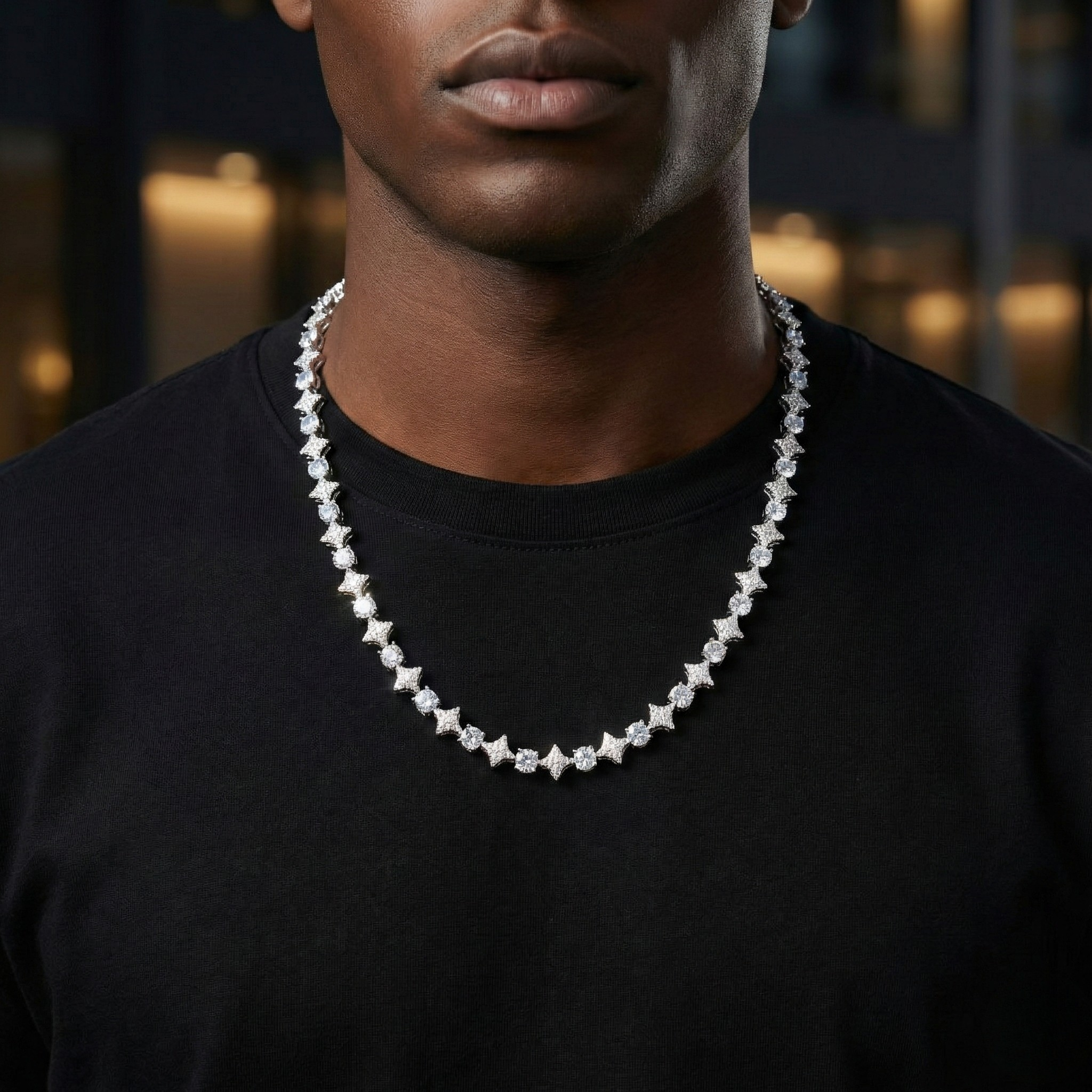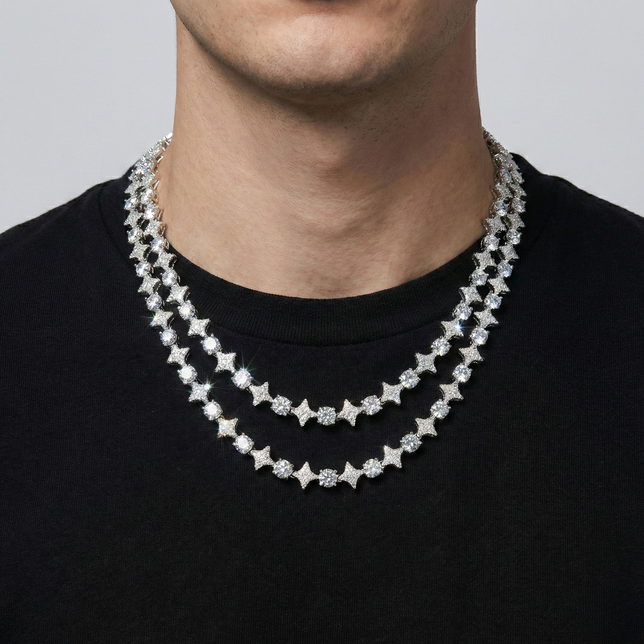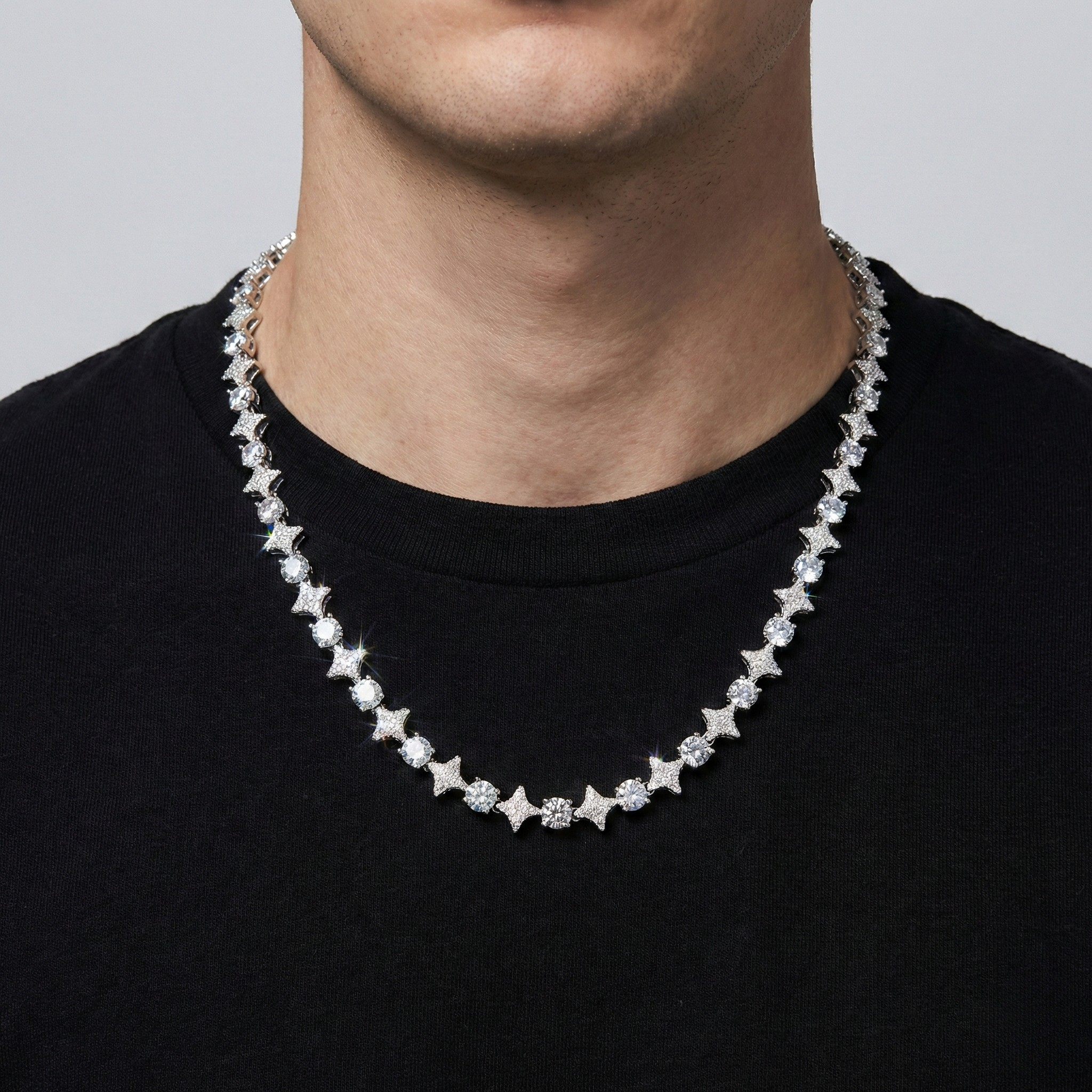 10mm 18k Gold Diamond Star Tennis Chain