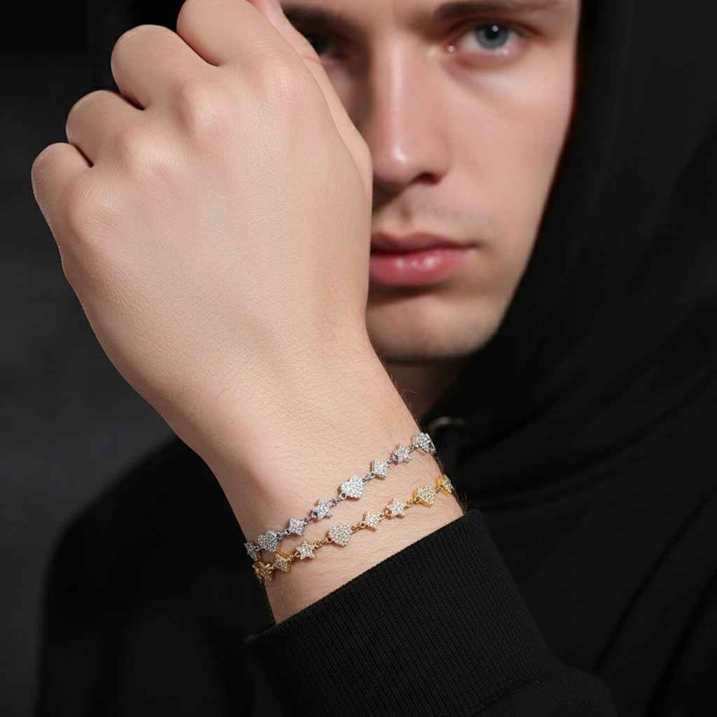 18k Gold Diamond Prong Cuban Link Watch Set (3 Pieces)