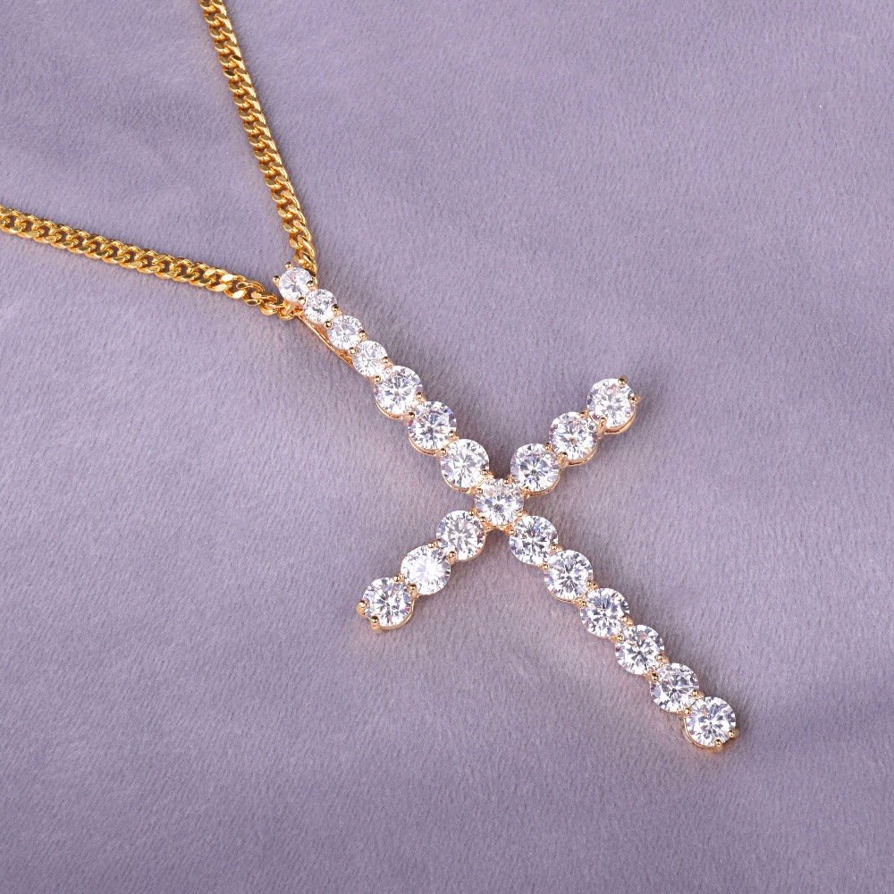 This Big Diamonds Cross is fashioned from high quality 18k Gold Plating and the cross is covered with stunning large cz diamonds for extra attention.