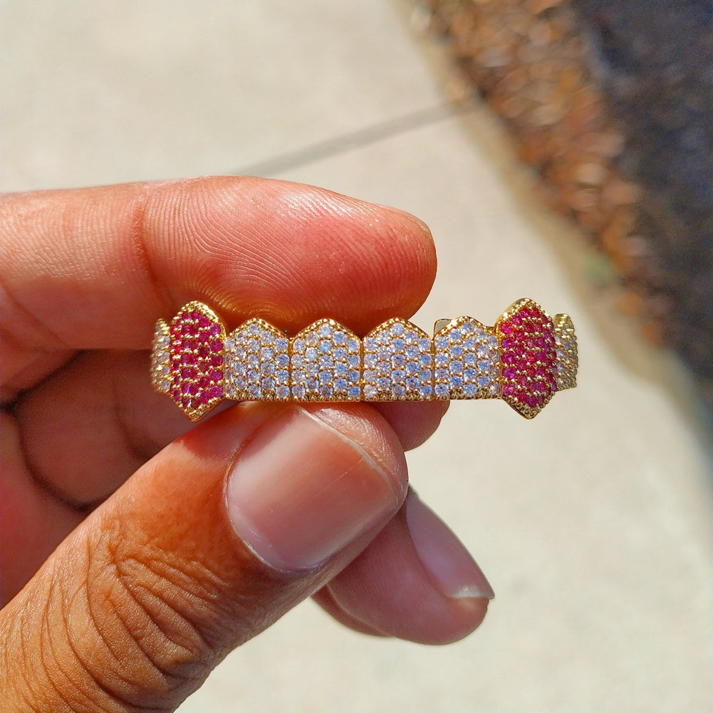 Take the grillz look to the next level. Don't stop with gold and diamonds, add some colour to you smile with a little Amethyst.
