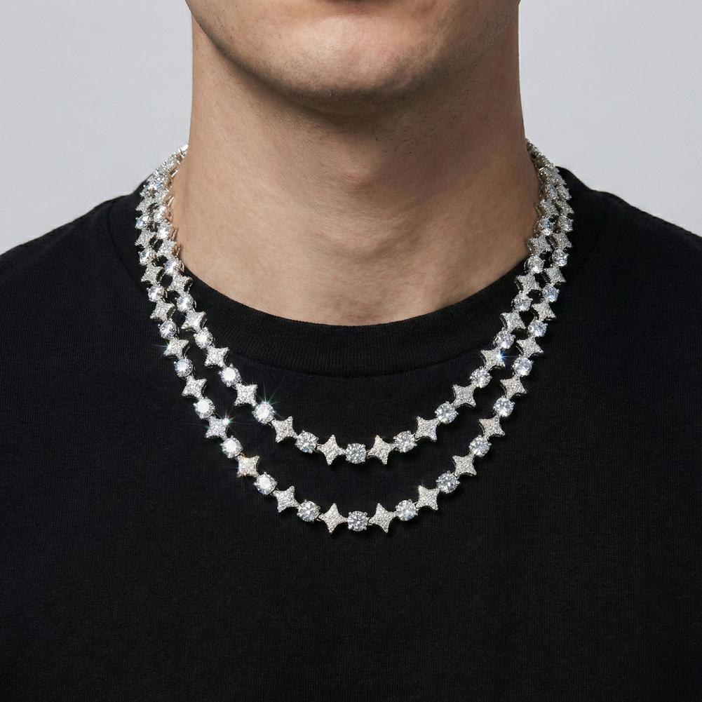 10mm 18K Gold Diamond Star Tennis Chain – A Celestial Statement of Luxury