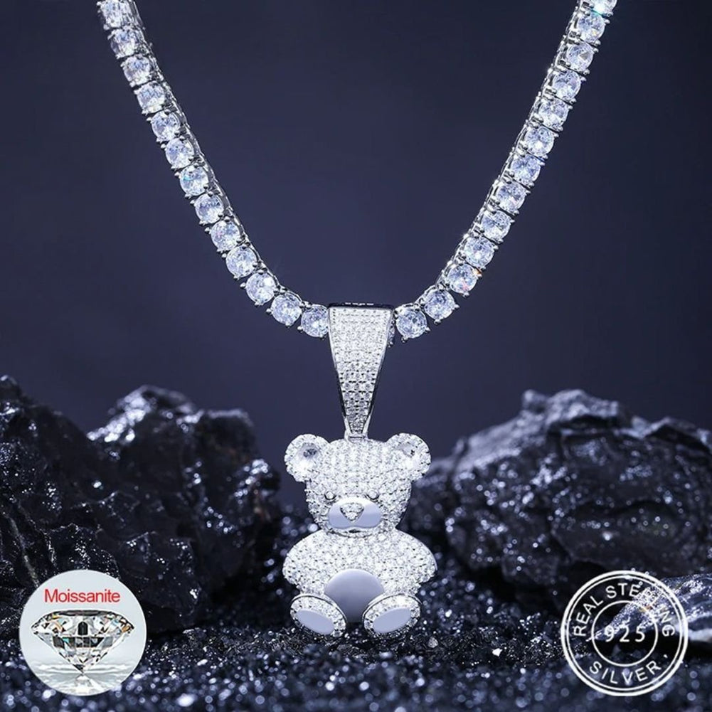 Moissanite Teddy Bear Chain for Streetwear & Hip Hop Looks