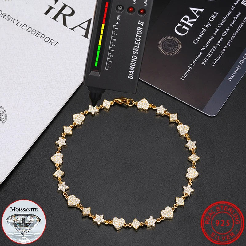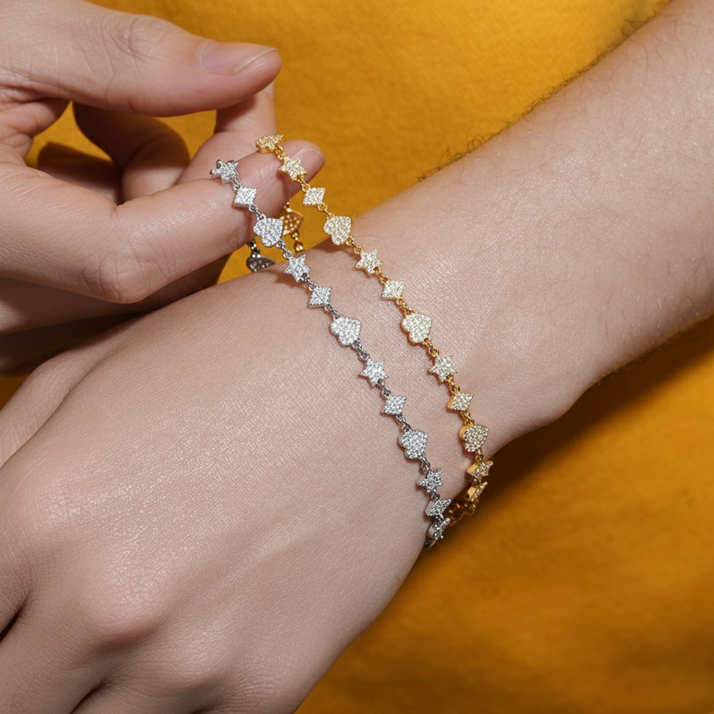 Perfect for everyday wear or special occasions, this 18K gold diamond charm bracelet with heart, star, and diamond charms is a standout choice for women and men who love luxury charm jewelry. Each diamond charm bracelet is meticulously crafted to reflect light brilliantly, ensuring your style shines from every angle.