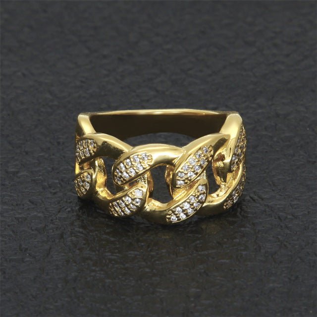 The Diamond Cuban Link ring is made with 18K Gold Plating and he Cuban link design is covered with stunning CZ Diamonds.