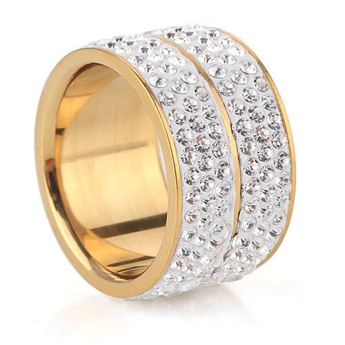 The 2 Row Ring is made from high quality 18K Gold Plating and then is carefully covered in 2 rows of brilliant CZ Diamonds