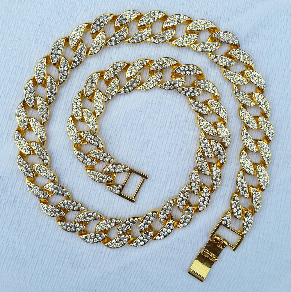 The Diamond Cuban Link is made with 18K Gold Plating and then its absolutely covered in CZ Diamonds to give it that Miami Beach shine.