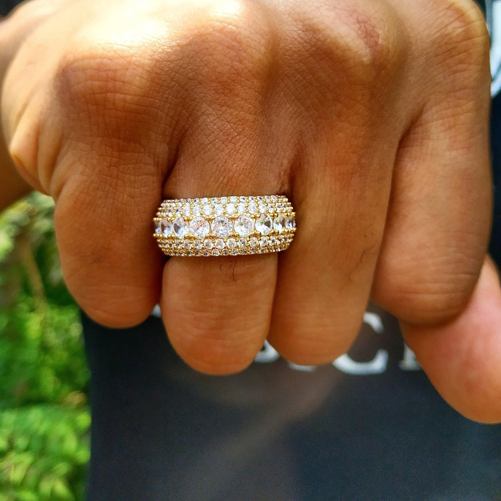 For those who love extra shine, this iced out 5 row diamond ring delivers bold, head-turning brilliance, while it also doubles as the classic 18K gold stacked row diamond ring that exudes refined sophistication. Each ring is designed to showcase its center diamonds while maintaining a balanced, luxurious feel.