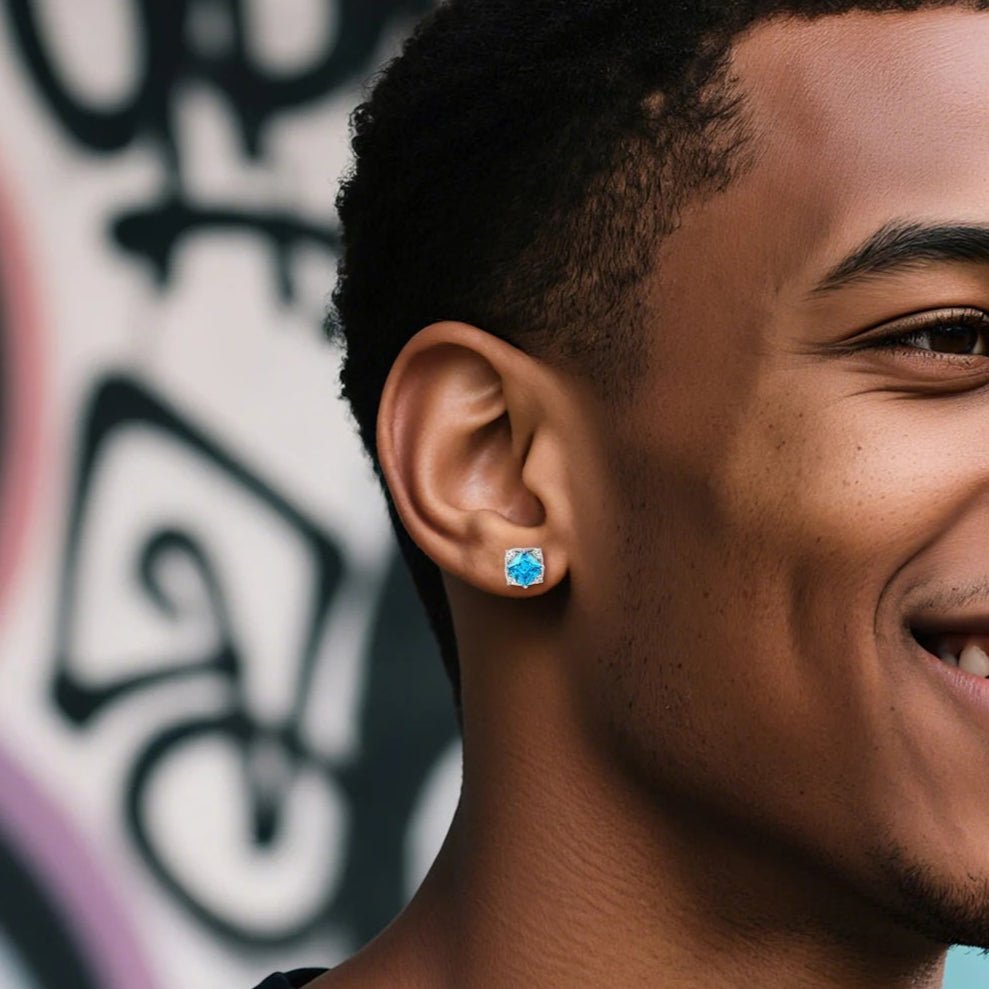 Turn heads and spark conversations with these stunning Moissanite Diamond Blue Asscher Cut Earrings, crafted for those who demand bold beauty with timeless sophistication. Featuring striking blue Asscher diamonds set in your choice of 18k gold plating or .925 Silver, these fancy blue Asscher stud earrings are a statement piece unlike any other.