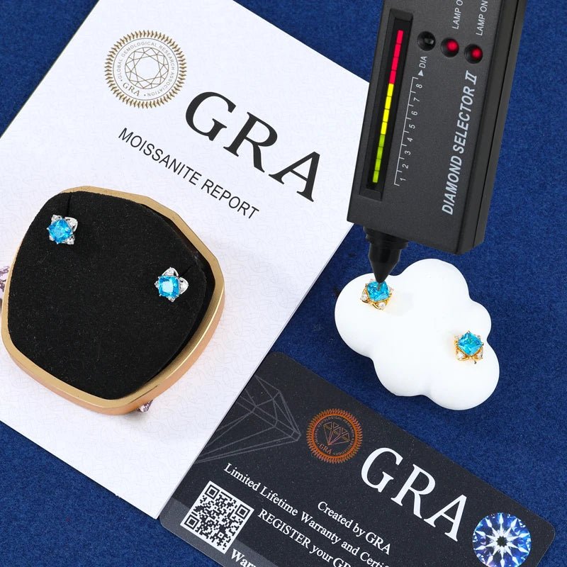 7mm Moissanite Diamond Blue Asscher Cut Earrings – Where Vintage Elegance Meets Modern Brilliance