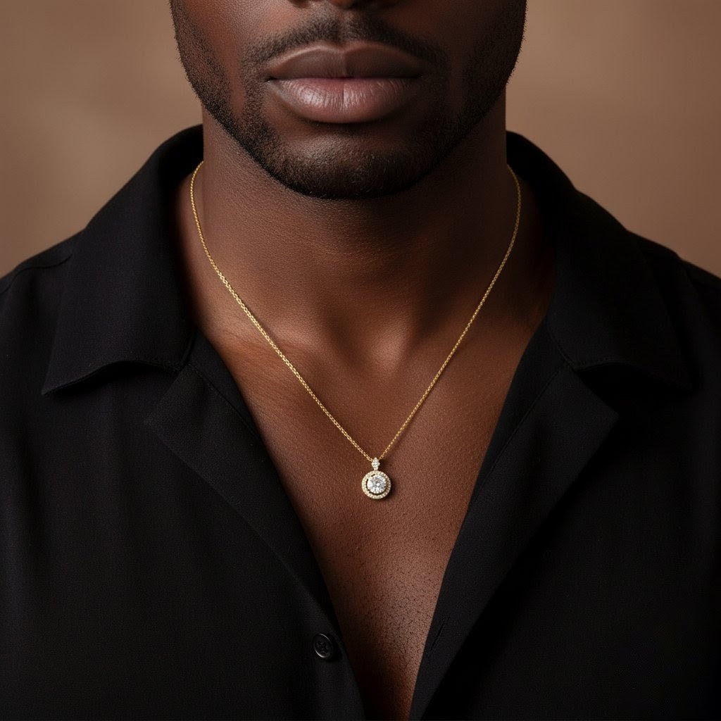 This men's or women's diamond halo necklace is designed to shine from every angle, offering the brilliance of a real diamond pendant necklace with exceptional craftsmanship. The result is a timeless treasure that feels luxurious, sophisticated, and unforgettable.