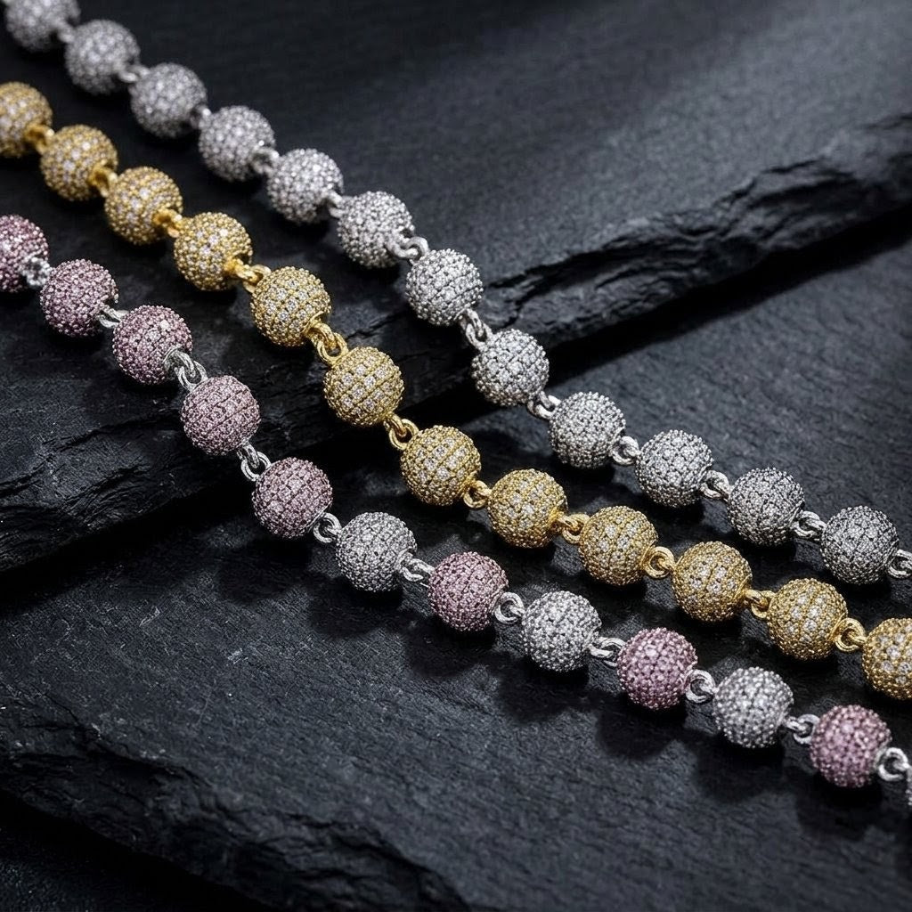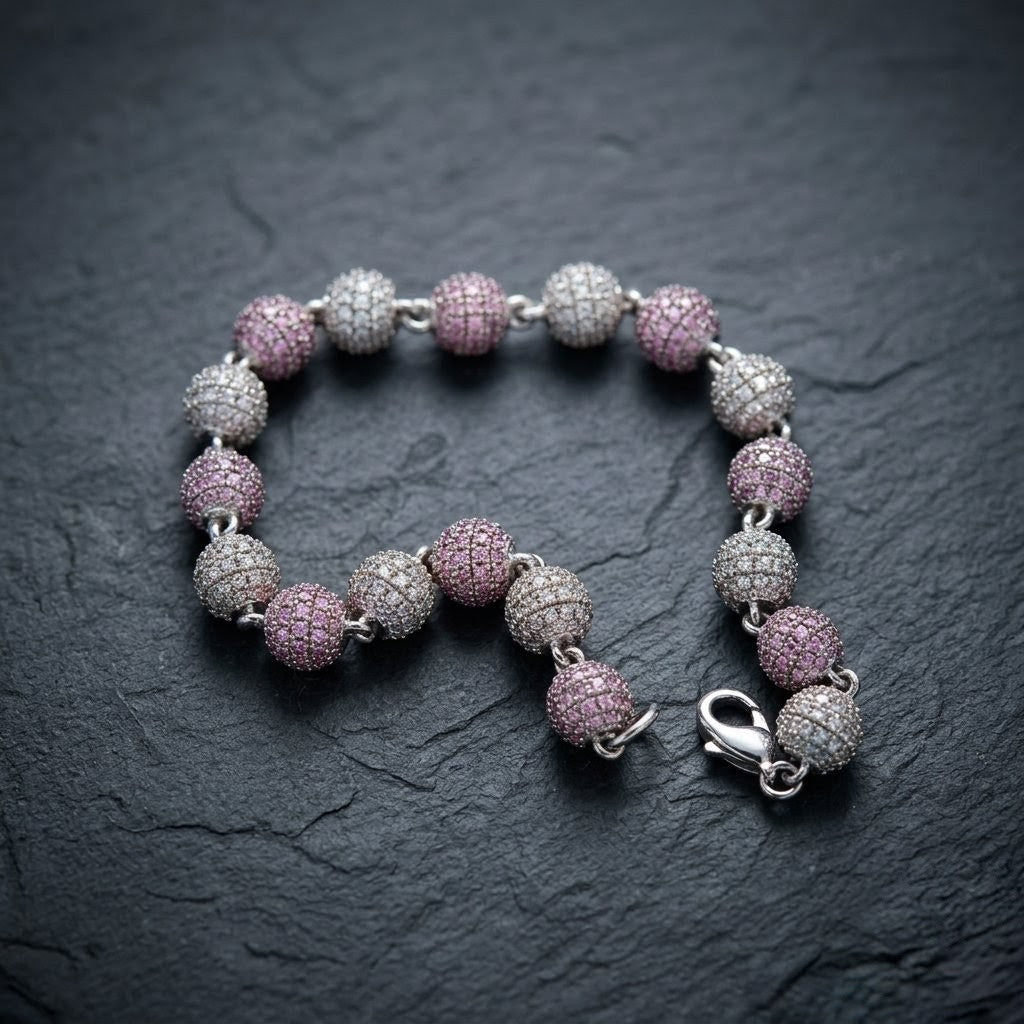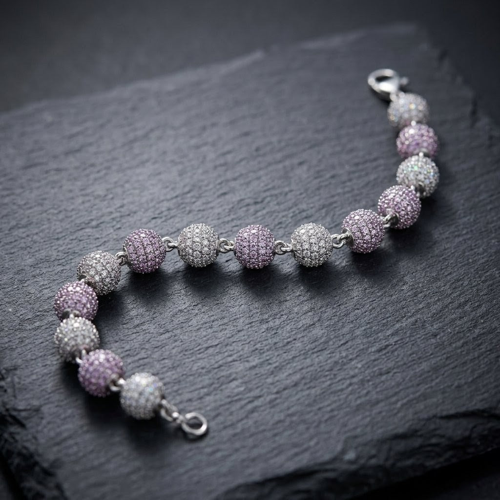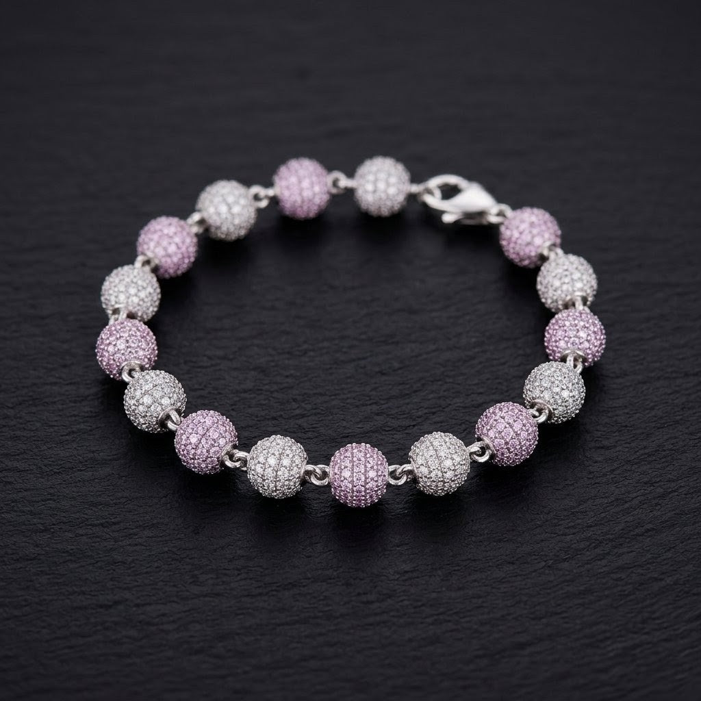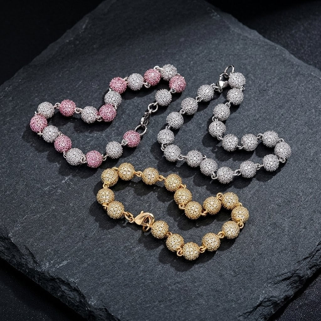 8mm 18K Gold Diamond Ball Bracelet