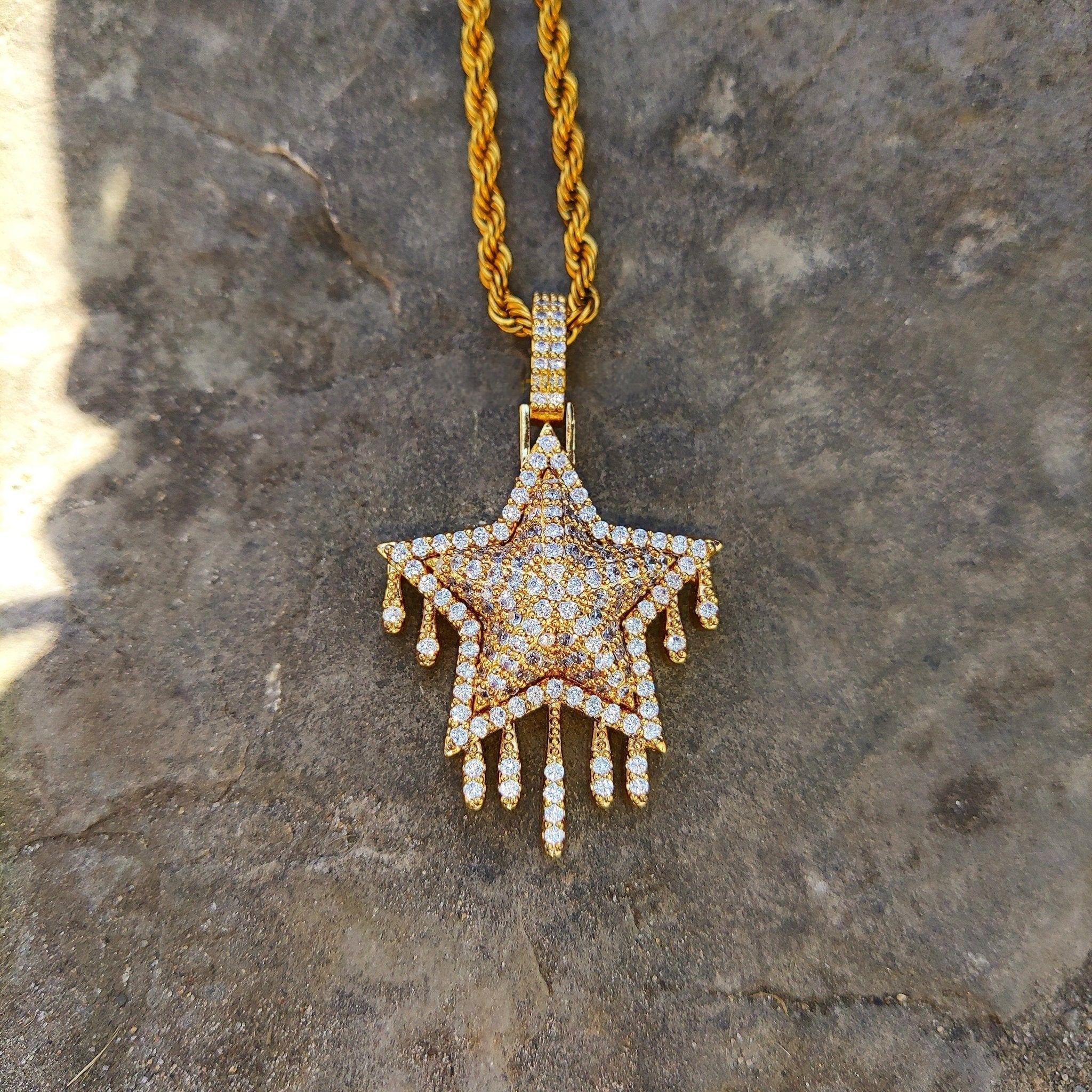 • 18K Gold Iced Out Star Drip Pendant handcrafted with precision