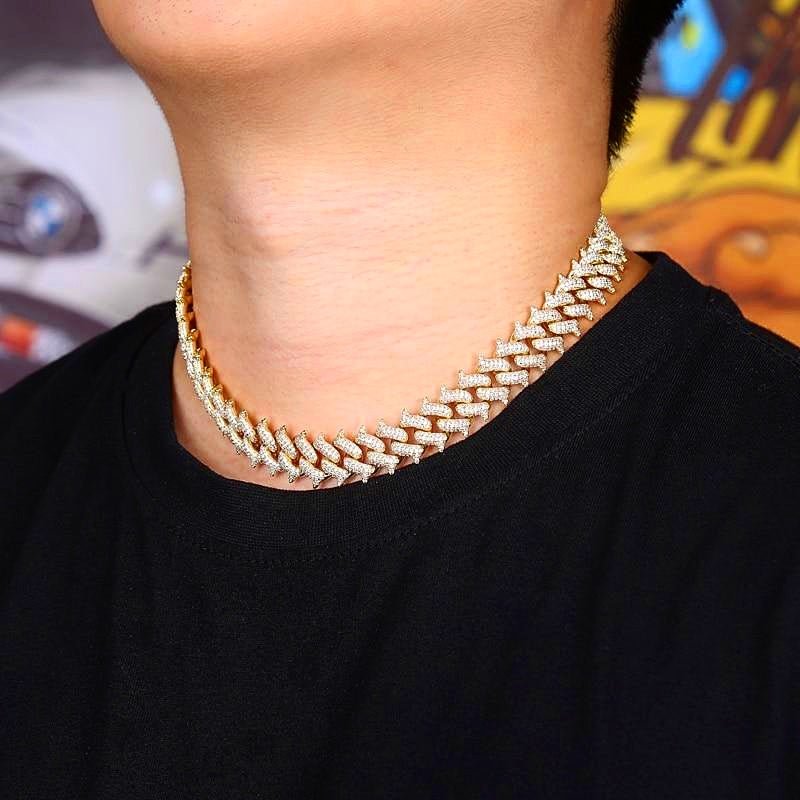 Crafted from premium materials and dipped in rich 18K gold plating, this hip hop jewelry chain delivers the heavyweight look and feel of luxury. Whether you're rocking the silver spike Cuban necklace, the two-tone finish, or classic gold Cuban chain, this piece hits hard in any light.