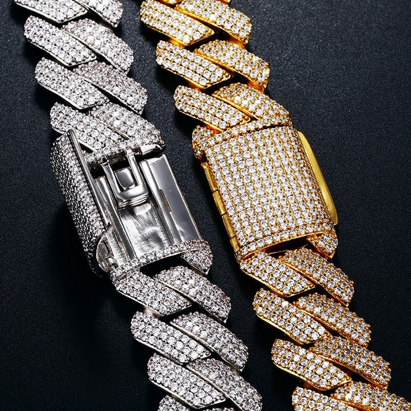 20mm 18k Gold Diamond Prong Cuban Link Chain