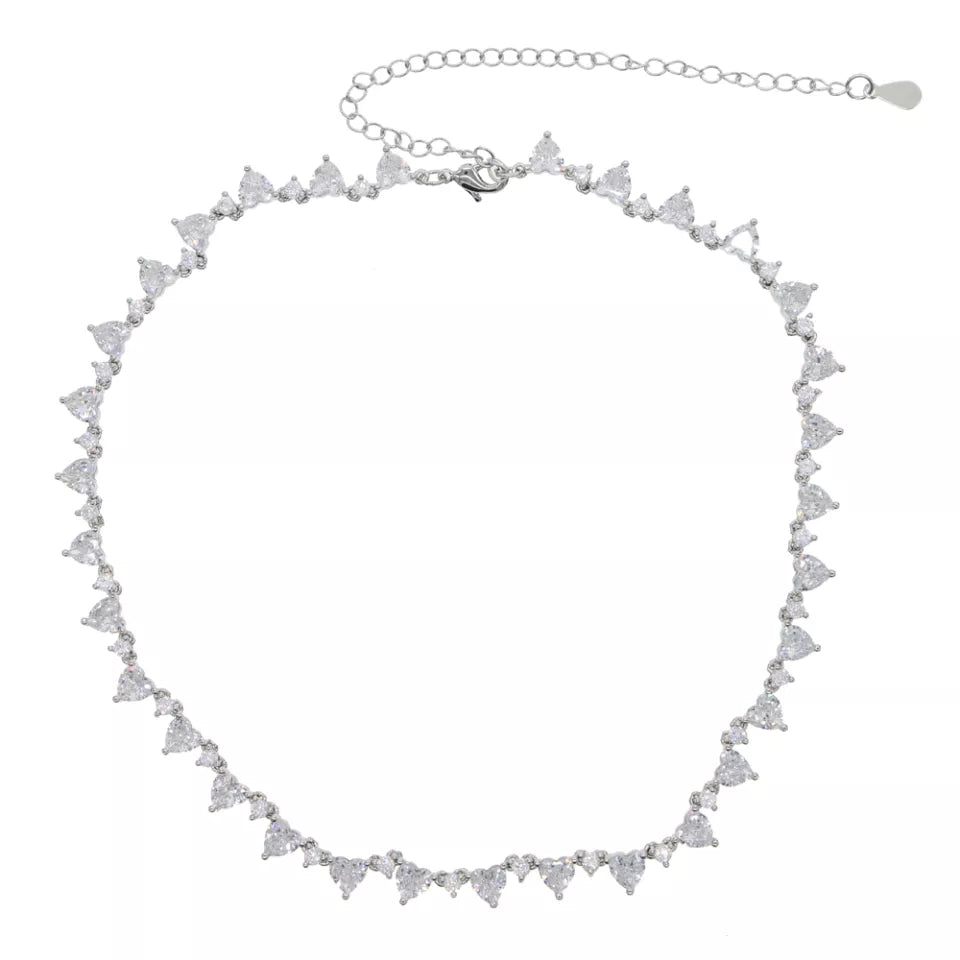18k Gold Diamond Heart Shaped Tennis Necklace