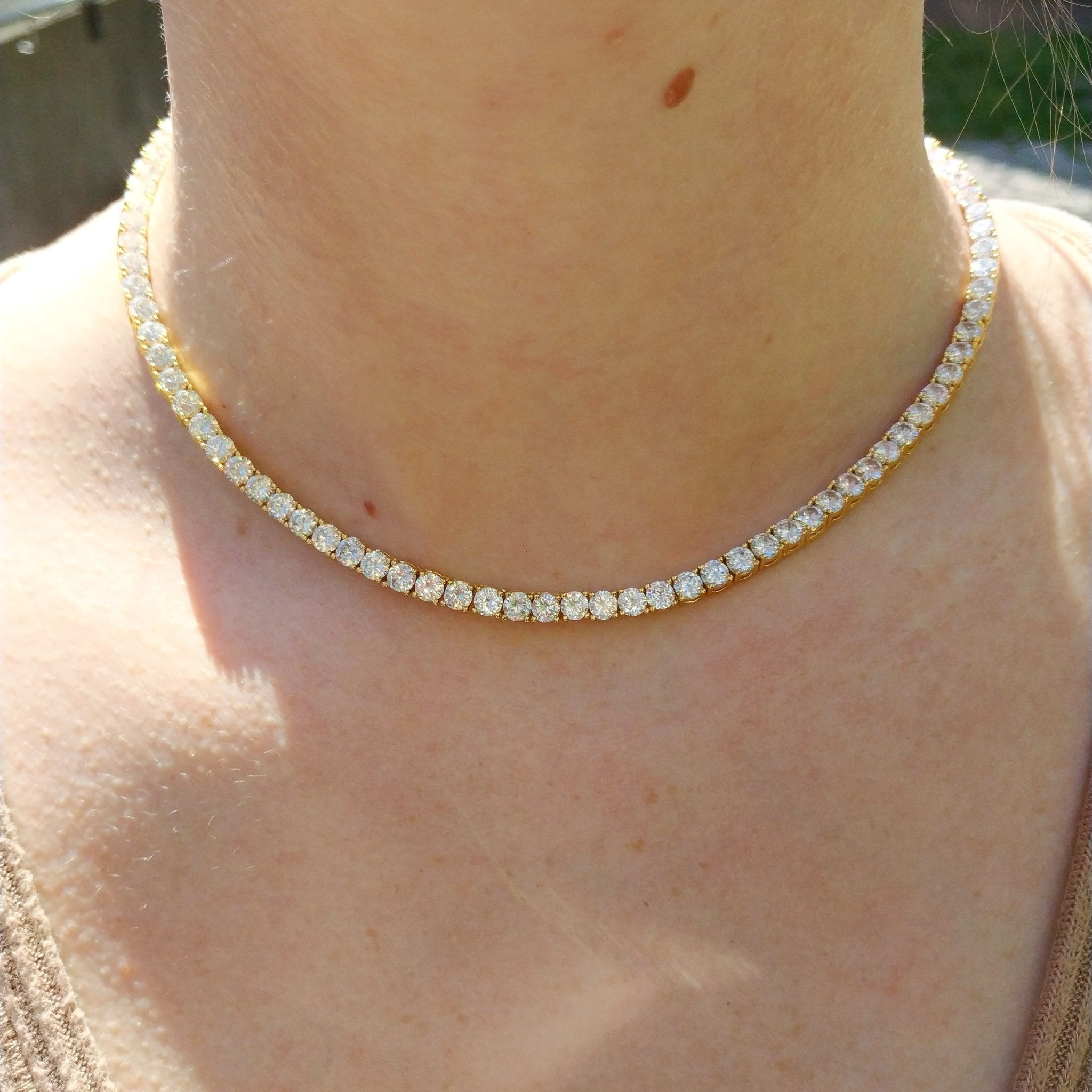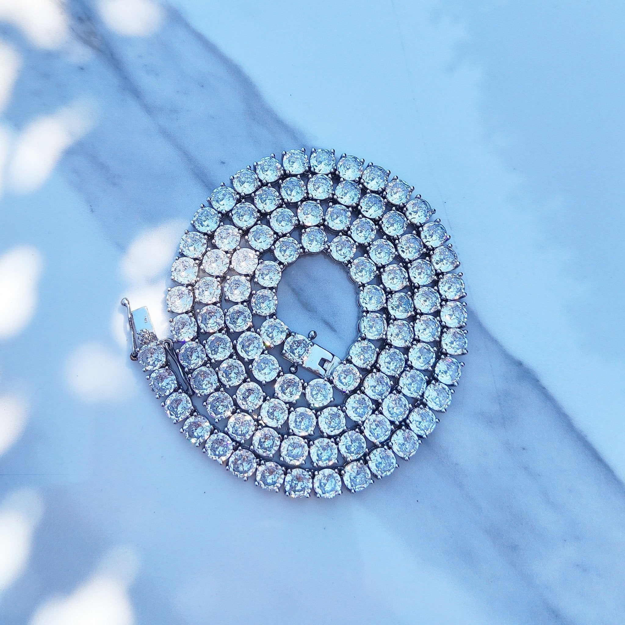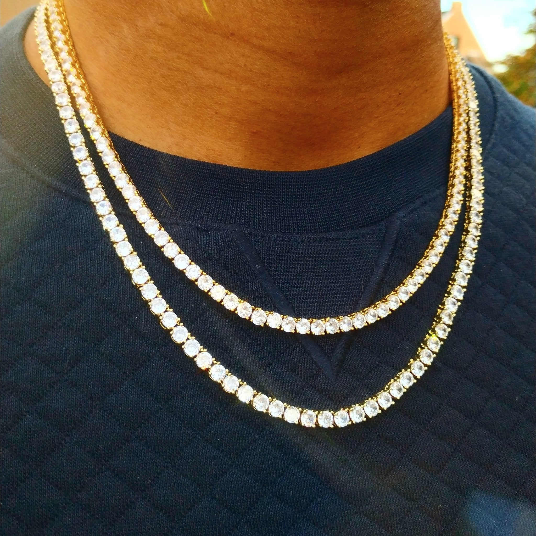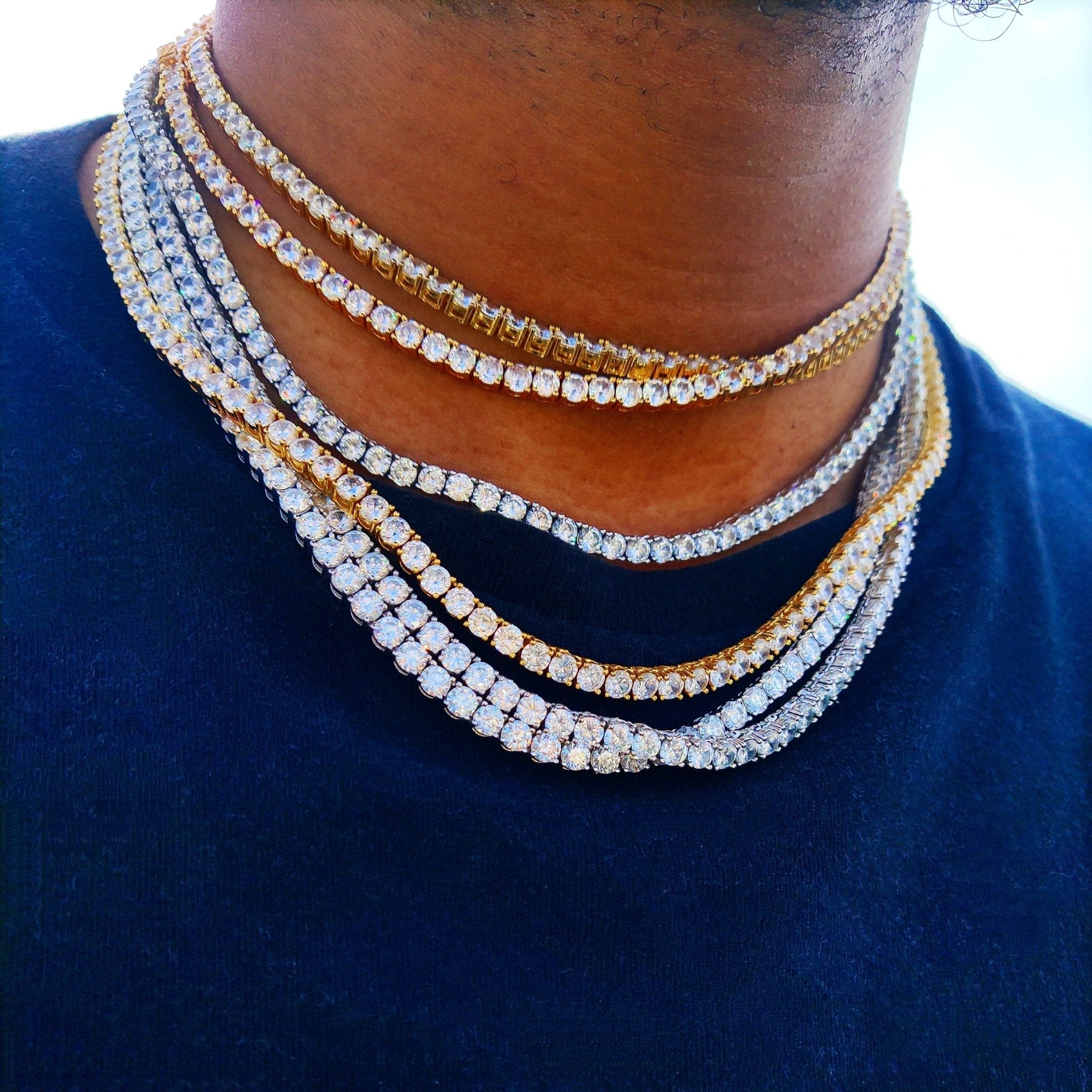Whether you're dressing it up or wearing it with your everyday fit, this gold diamond tennis chain for men shines from every angle. The tennis chain necklace design offers a clean, continuous row of brilliance, making it a staple in both hip hop jewelry and high-end fashion.