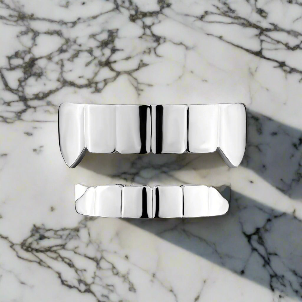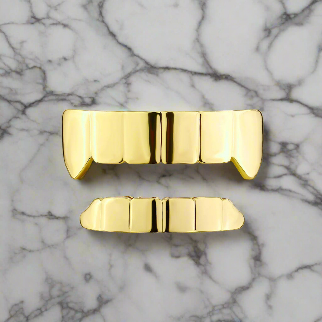 Make it yours. Make it legendary. The Custom 18K Gold One Piece Fang Grillz is your key to standing out. Order now and own your bite!