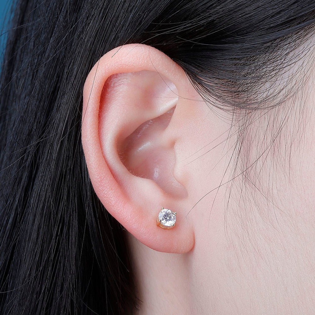Set in your choice of 18K gold plating, or fine .925 silver, these lab-created diamond earrings feature VVS1 clarity Moissanite stones that are certified, flawless, and guaranteed to pass diamond testers. Perfect for sensitive ears, our designs are crafted for both beauty and comfort.