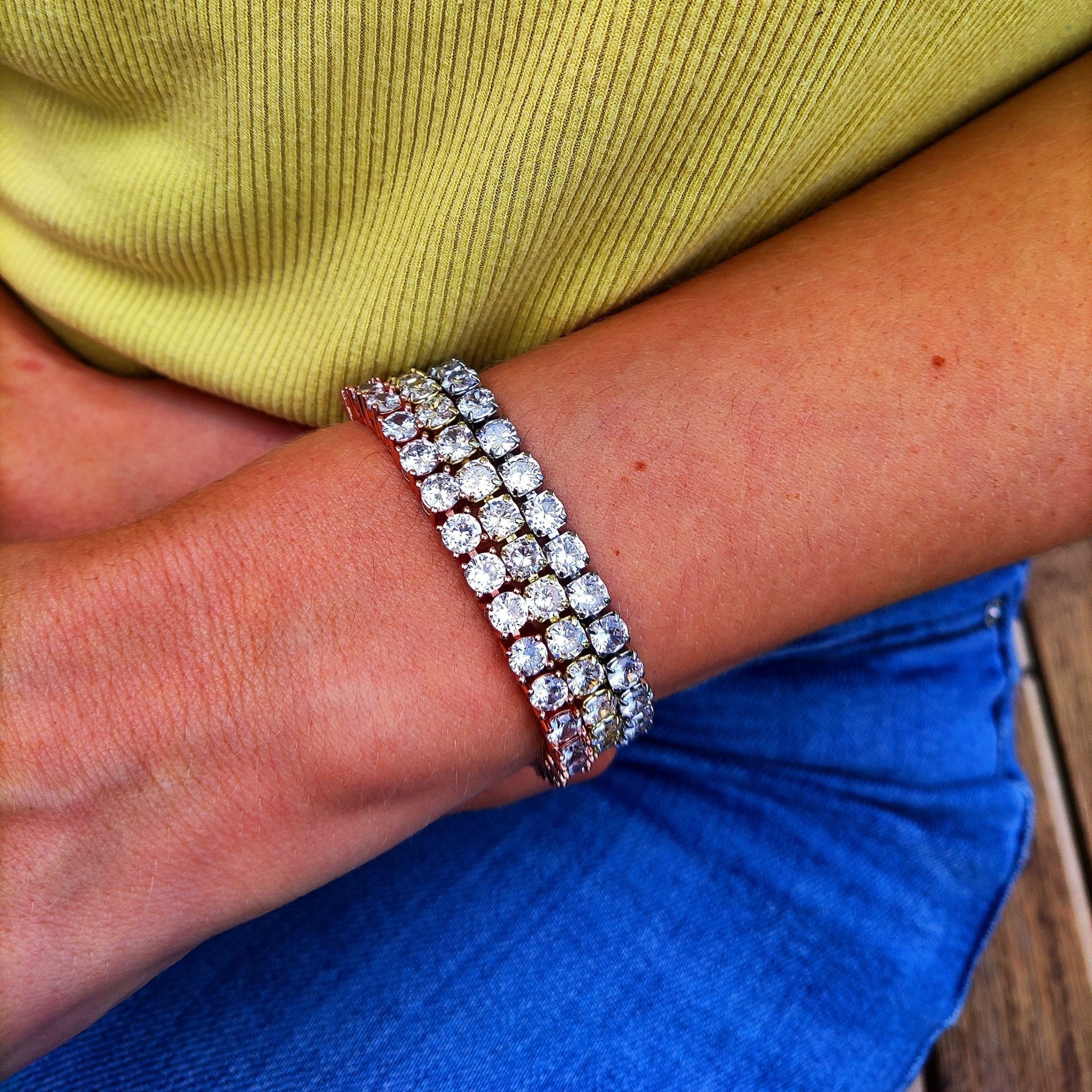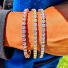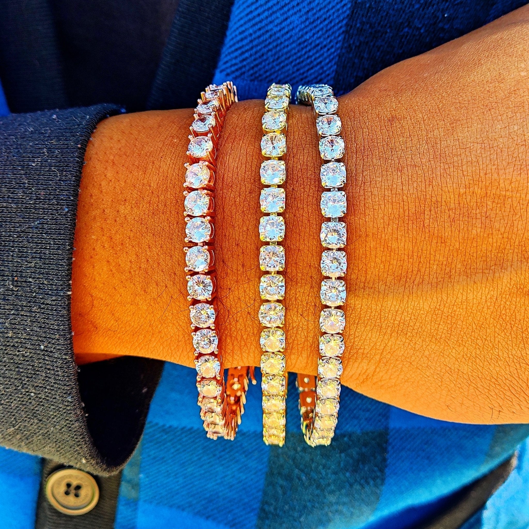 Enter the realm of true luxury, with an elegant Moissanite Diamond Tennis Bracelet. One of the most popular bracelet style will perfectly compliment your outfit to provide an extra touch of opulence. Made will real .925 silver and gold for a life long experience complimented with VVS1 grade moissanite diamonds.