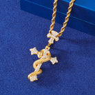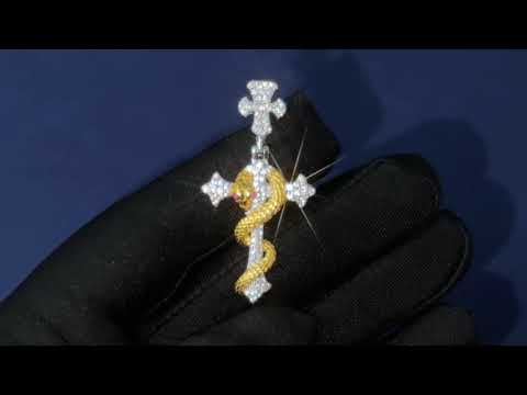 • 1.8-inch Moissanite Diamond Snake Cross in your choice of 18K Gold or .925 Sterling Silver