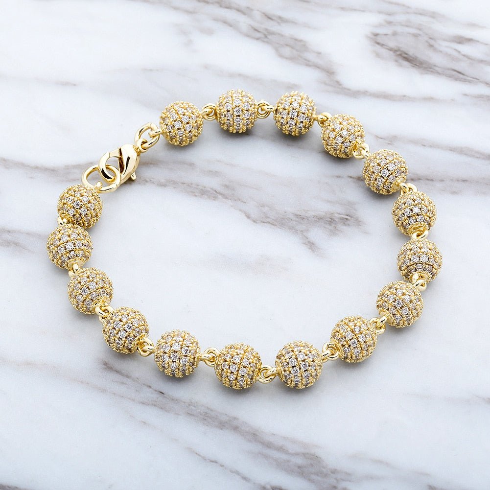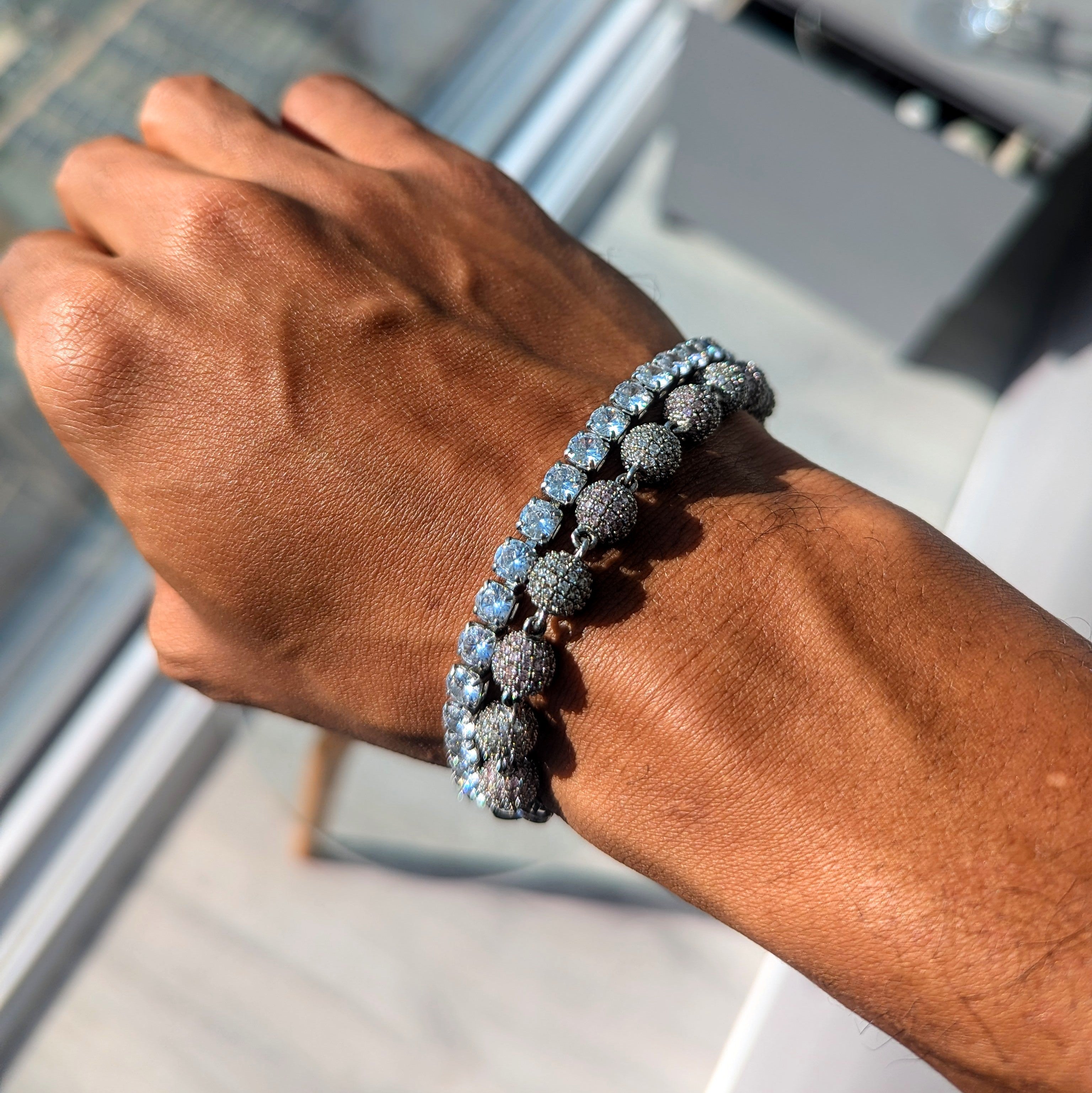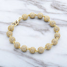 Elevate your wrist game with our 18K Gold Diamond Ball & Tennis Bracelet Set. This luxurious duo brings together timeless elegance and modern edge, featuring one meticulously crafted tennis bracelet lined with brilliant diamonds, and a unique diamond-studded ball bracelet that adds a bold, sophisticated touch.