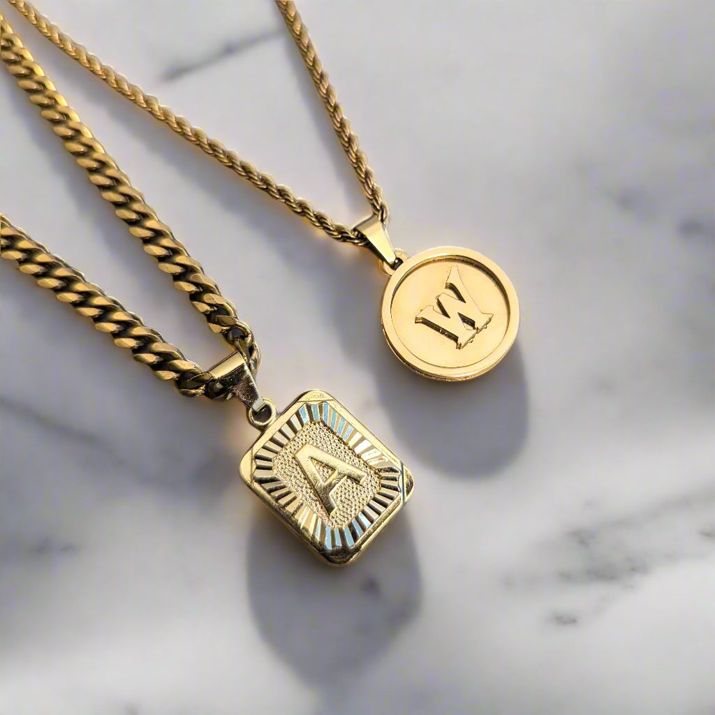 Unveil your unique style with our Custom 18k Gold Plated Square and Circle Pendant Set – a luxurious 4-piece collection that lets you wear your story with pride. The square pendant features a single custom letter, making it the perfect way to showcase your initial or a loved one’s. Meanwhile, the circle pendant offers boundless possibilities for personalization. Whether it’s a name, a meaningful word, a special date, a cherished picture, or a powerful symbol, this pendant allows you to create a piece that’s truly one-of-a-kind.
