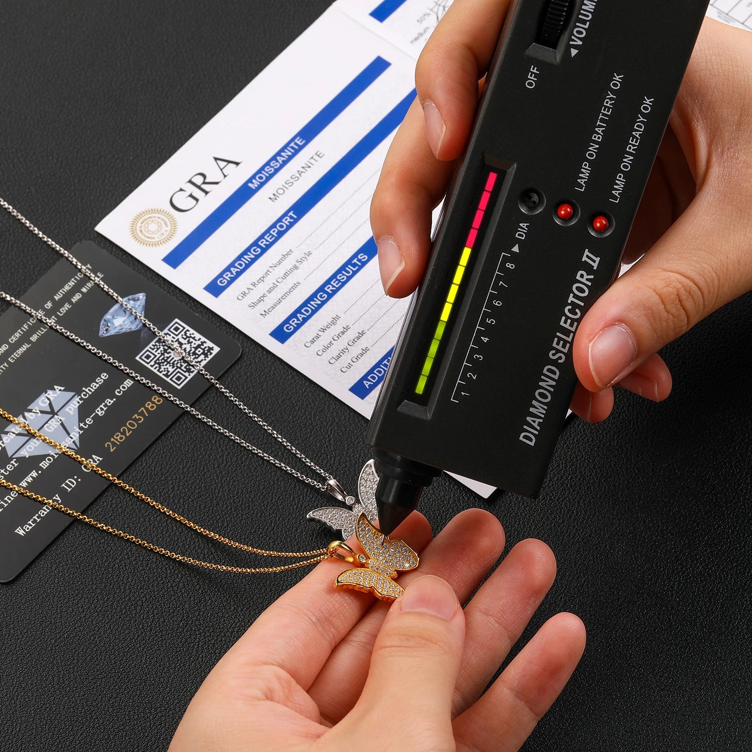 • A stunning 1-inch Butterfly Pendant featuring certified VVS1 Moissanite Diamonds