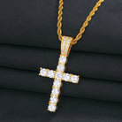 Moissanite Diamond Cross Pendant – Choose between 1.4" or 2" in size, finished in 18K gold plating or Solid .925 Silver for a bold, brilliant look.