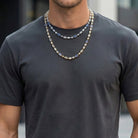 Elevate your style with this 6mm 18k gold cross chain, a true masterpiece of luxury and craftsmanship. Each link alternates between diamond-encrusted blue gemstones, luminous opal pieces, and finely detailed cross charms, creating a bold statement piece that captures attention from every angle.