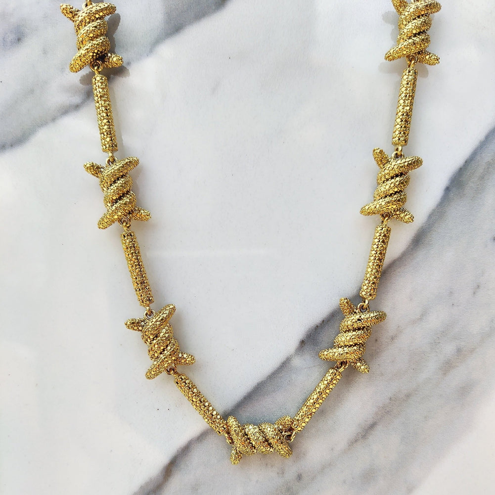 The 10mm 18K Gold Barbed Wire Chain is edgy, eye catching and the perfect way to look sharp. Compliments any style and pulls any outfit together.