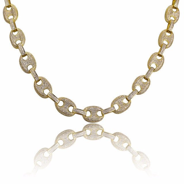 The Diamond Oval Link Chain takes the trendy Gucci Link style to the next level with stunning CZ Diamonds that sparkle and shine in any situation. The High Quality 18k Gold Plating that its made with ensures a long lasting and durable shine that will compliment any style and take your outfit to the next level. Shop Now and drip harder!
