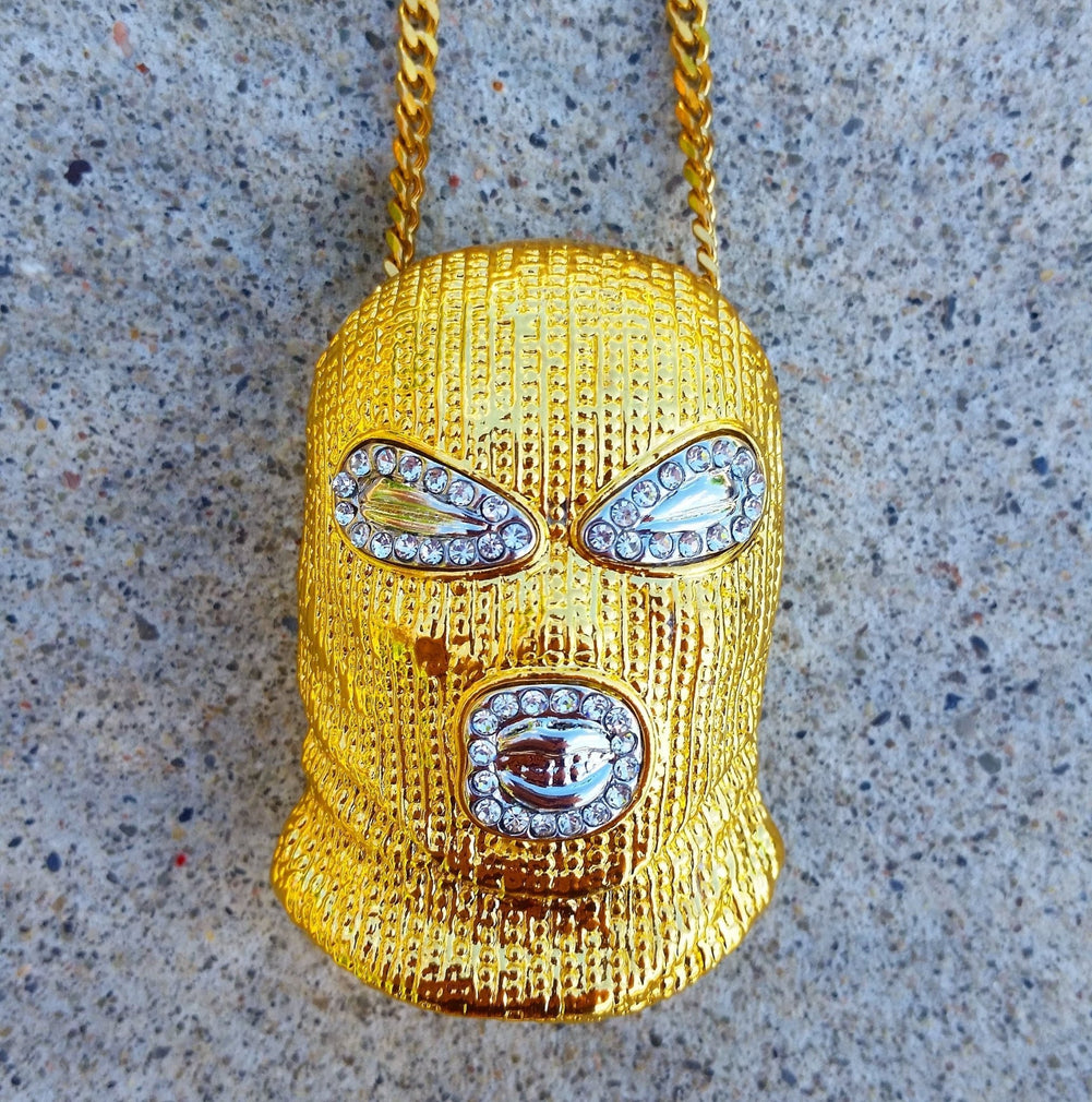 - 2.3" CZ Diamond 18k Gold Plated or Silver Plated Ski Mask Pendant