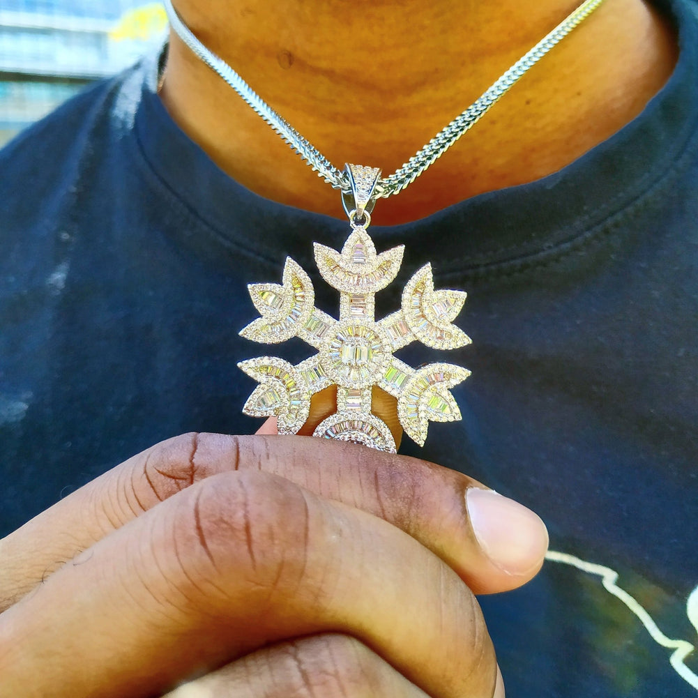 Crafted in 18K gold and set with dazzling baguette diamonds, this snowflake pendant for winter fashion is perfect for layering or wearing solo as a signature statement. From custom gold snowflake necklaces to men’s iced-out snowflake pendant necklaces, every angle is designed to shine in the light and capture attention in any room.