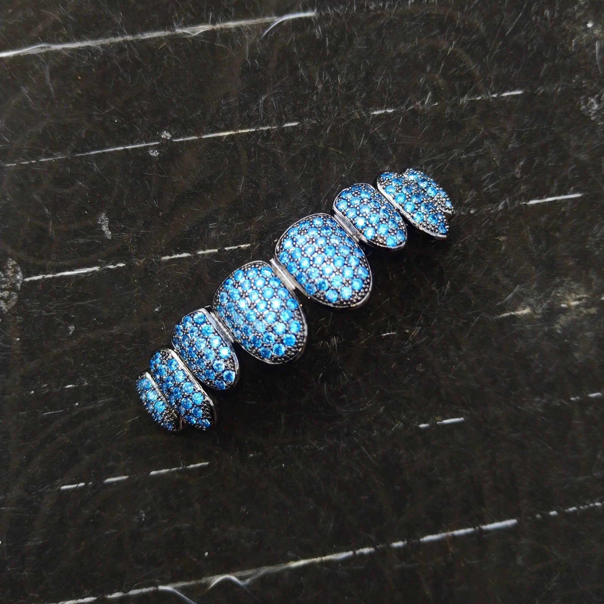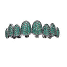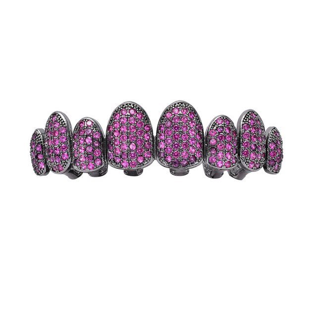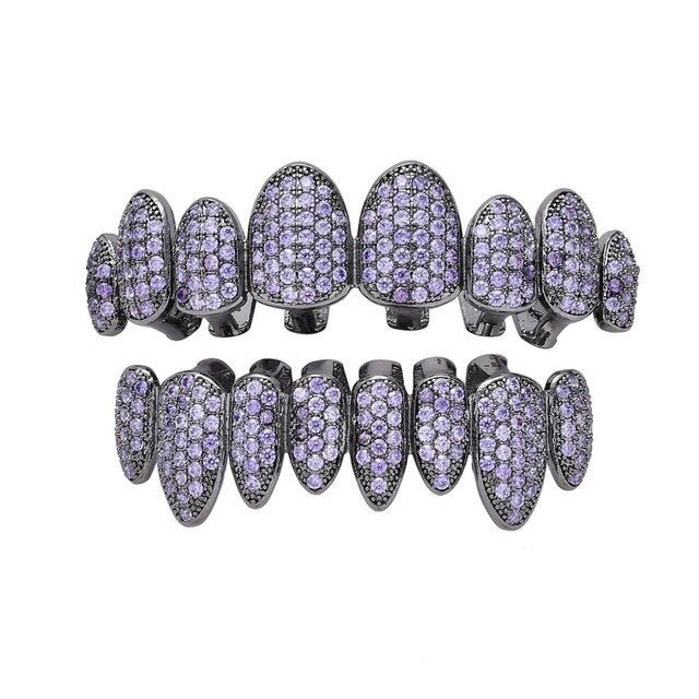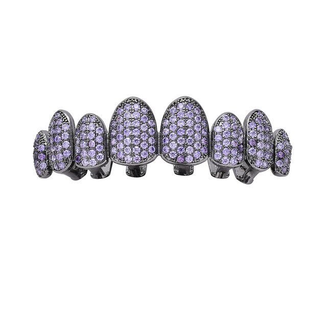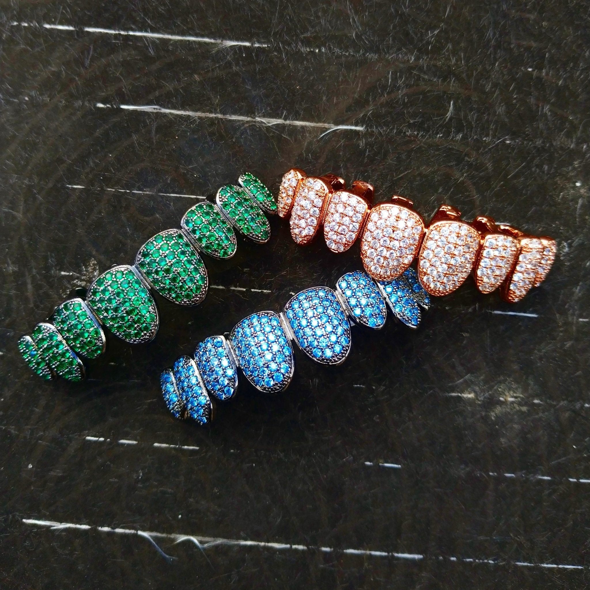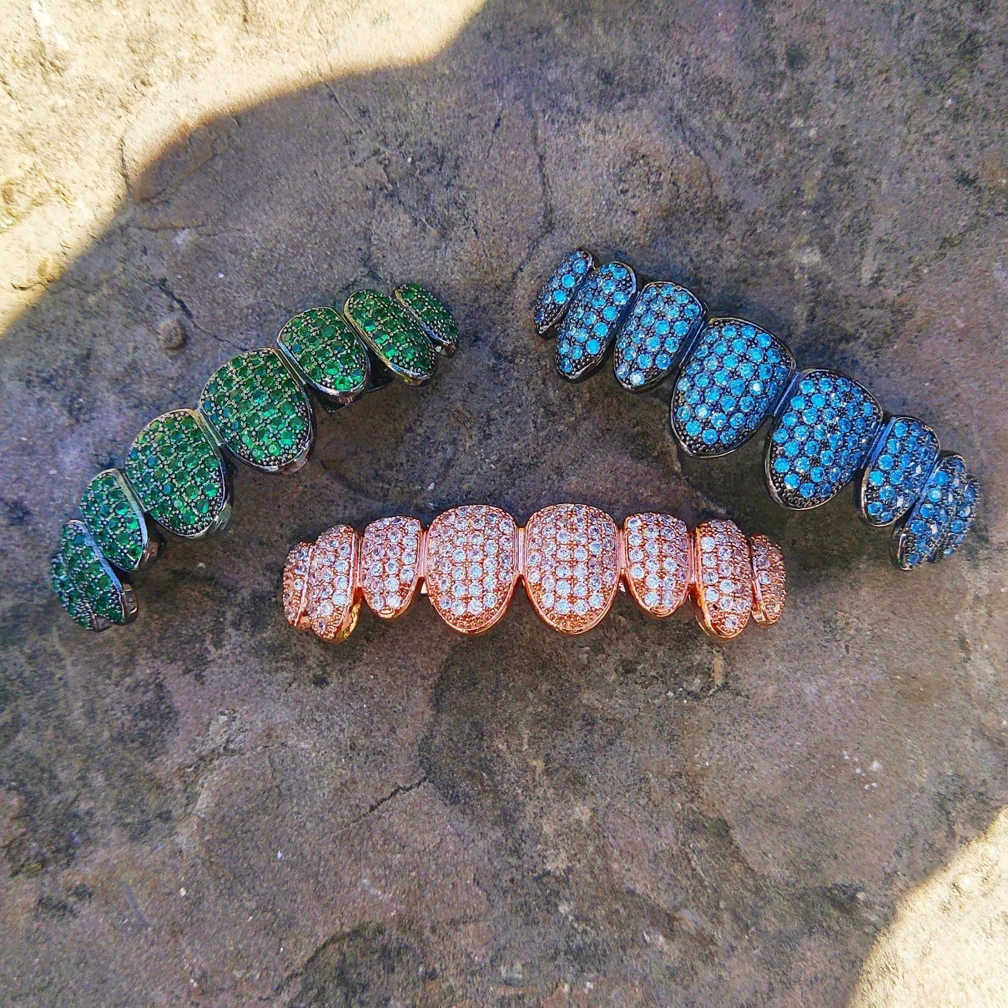 This fully iced out top and bottom grillz set is flooded with hand-set colored diamonds, laid in rich, polished 18K gold plating for that flawless shine. Whether you're flexing on the ‘Gram or lighting up a stage, these gold teeth grillz hit hard from every angle.