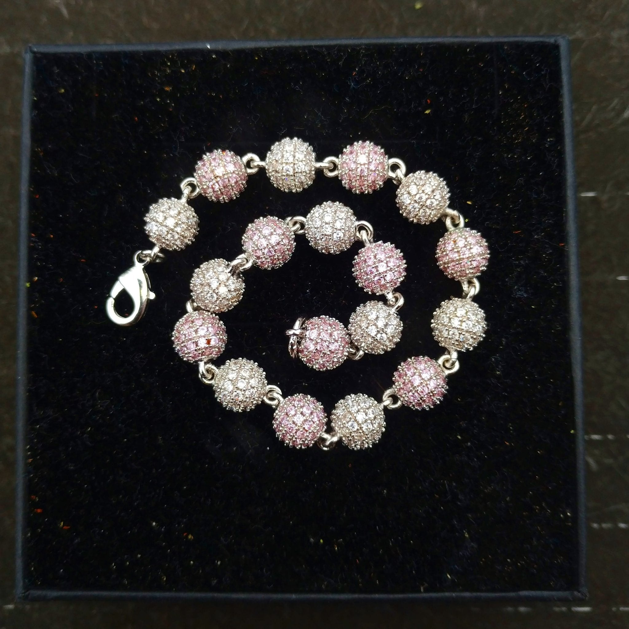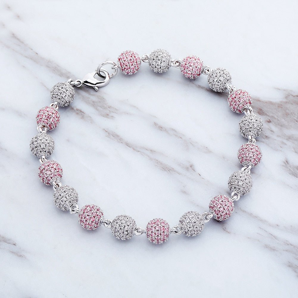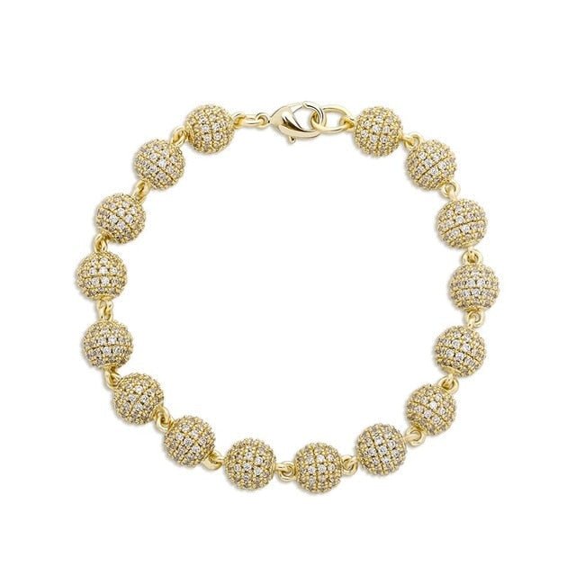 The 8mm 18K Gold Diamond Ball Bracelet is made from High Quality 18K Gold Plating dipped 5 times for a long lasting and durable shine. The bracelet is the flooded with stunning prong set VVS CZ Diamonds.