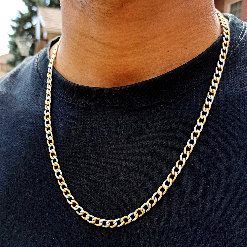 18K Gold 2 Tone Cuban Link Chain (3mm - 7.5mm)