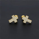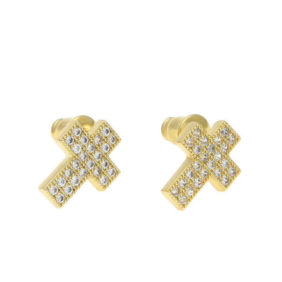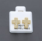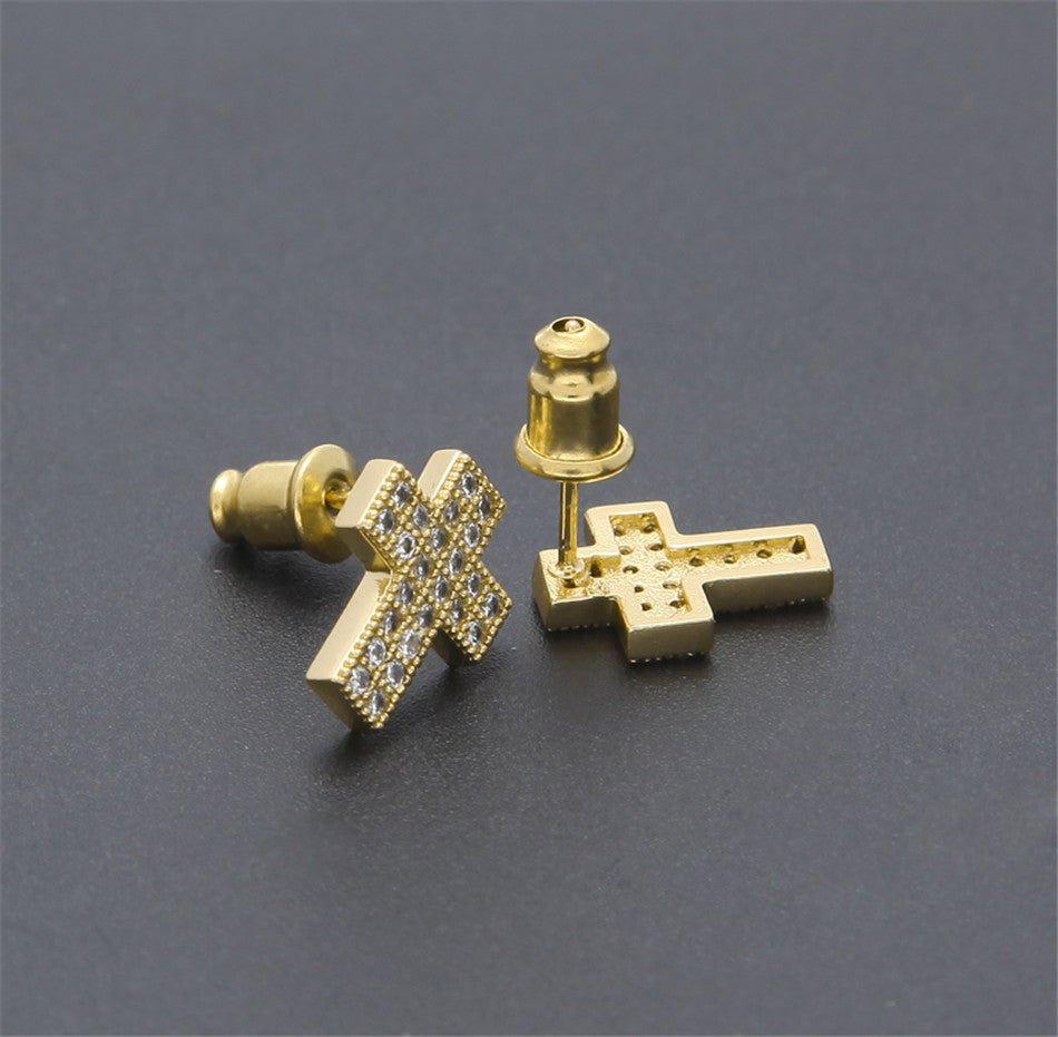 2 18K Gold Plated Diamond Cross Earrings (9 mm x 12 mm)