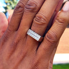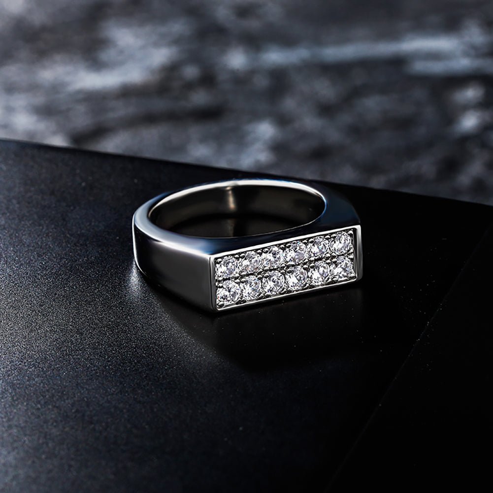 Make your mark with a bold statement piece designed for those who own the spotlight. This 18K gold diamond ring features a sleek rectangular top set with a two row diamond design, giving it that perfect iced out shine that demands attention from every angle.