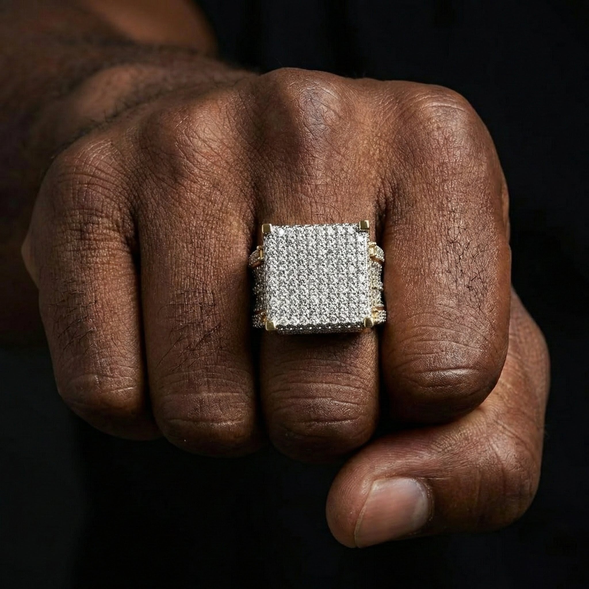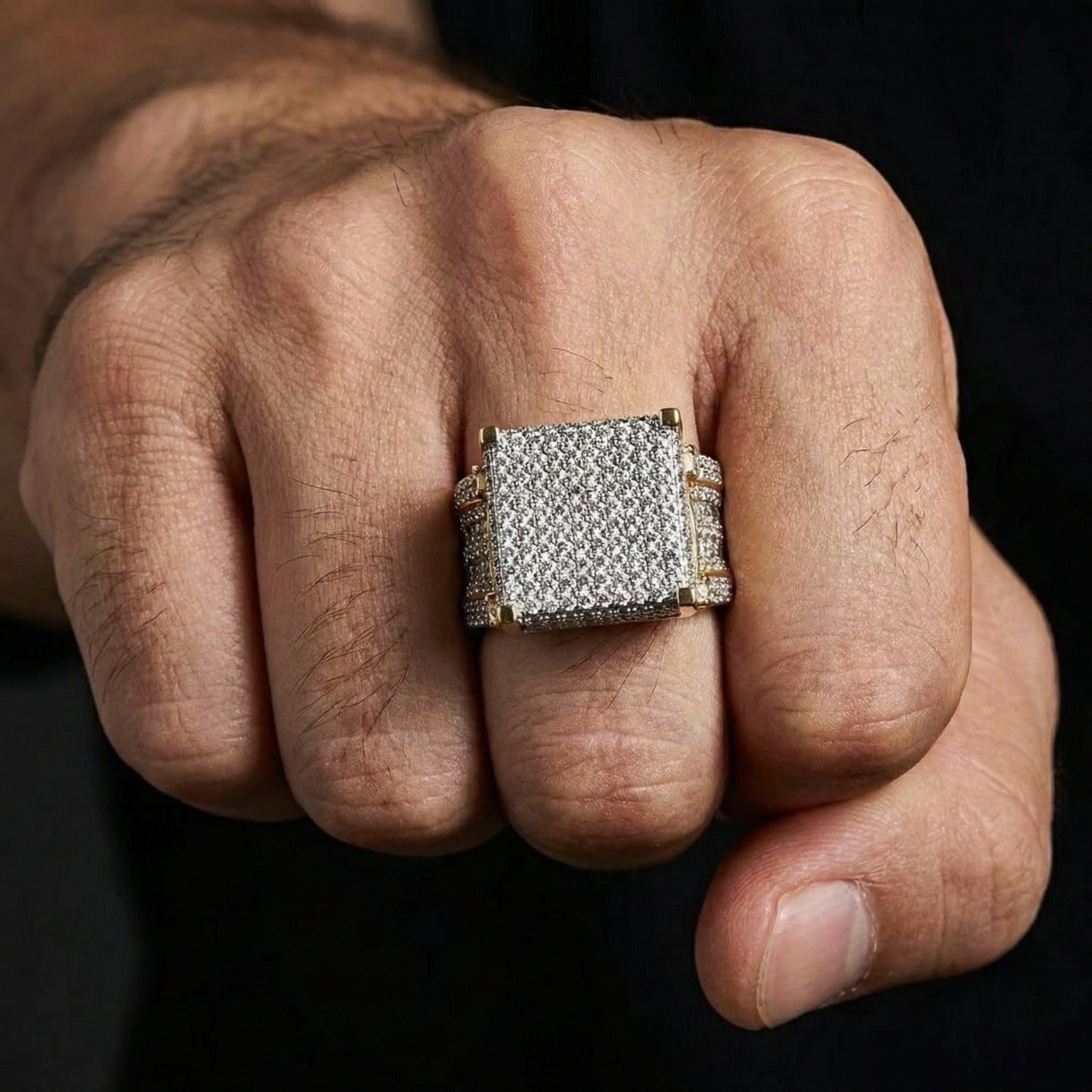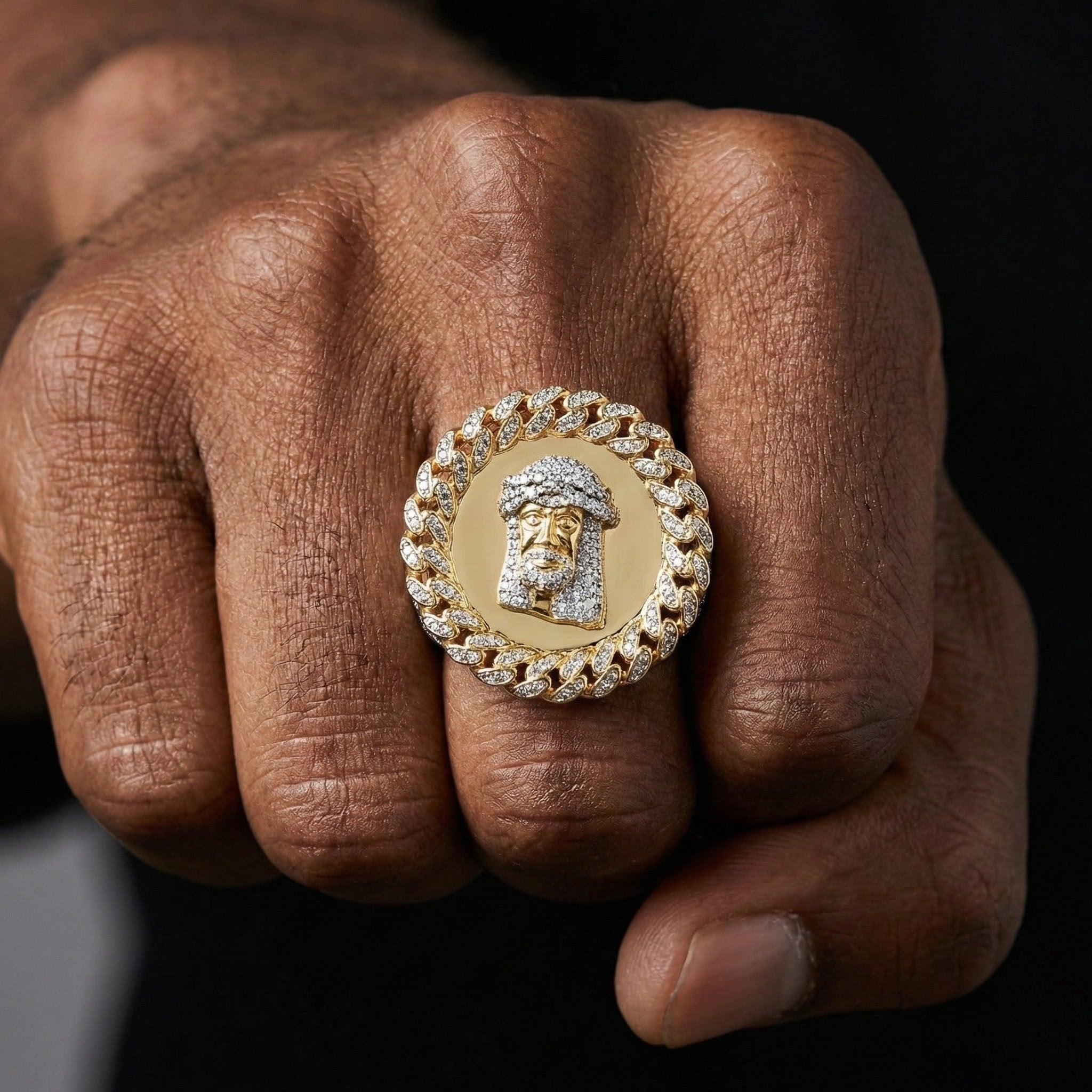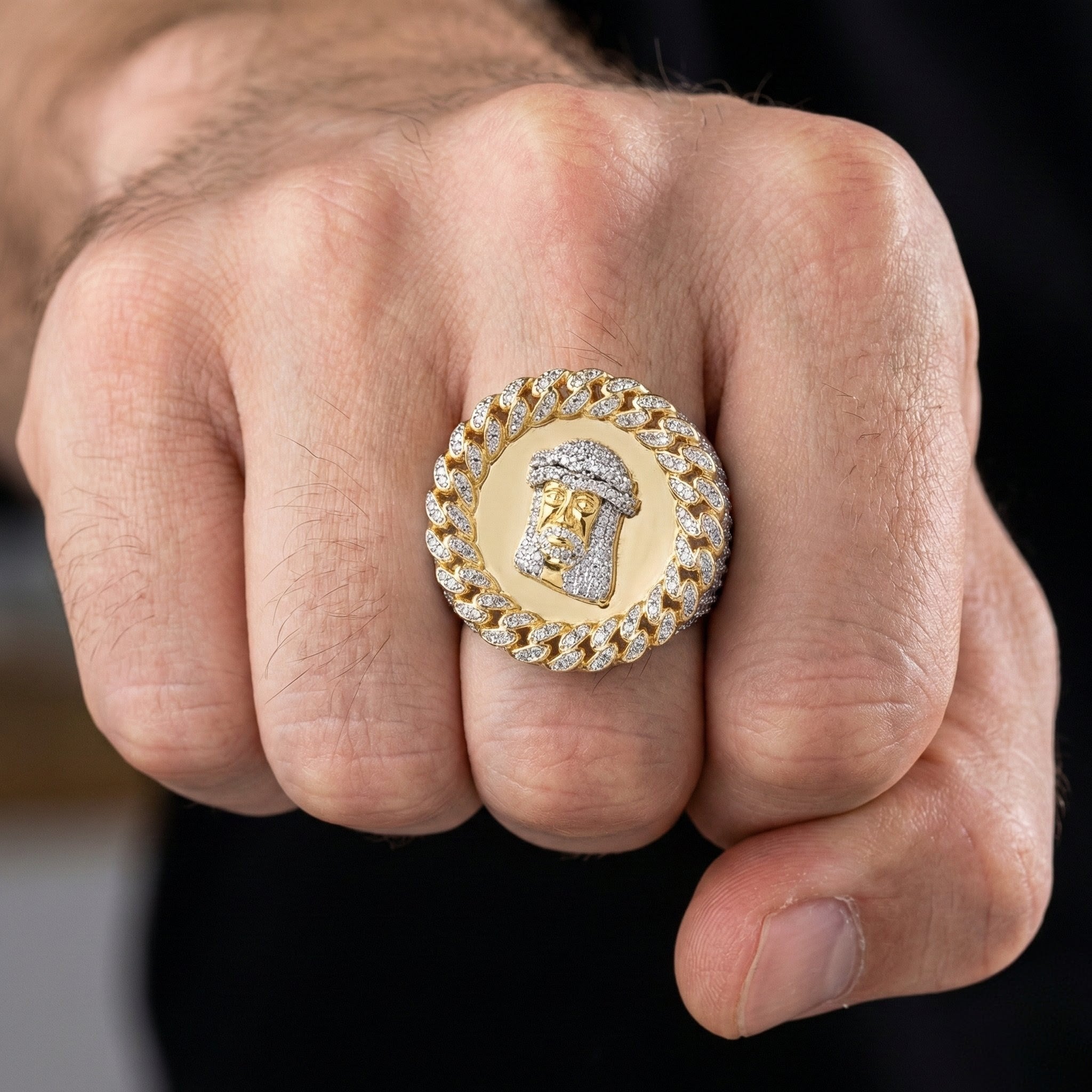 Anillo de Jesús de eslabones cubanos de oro de 18 quilates