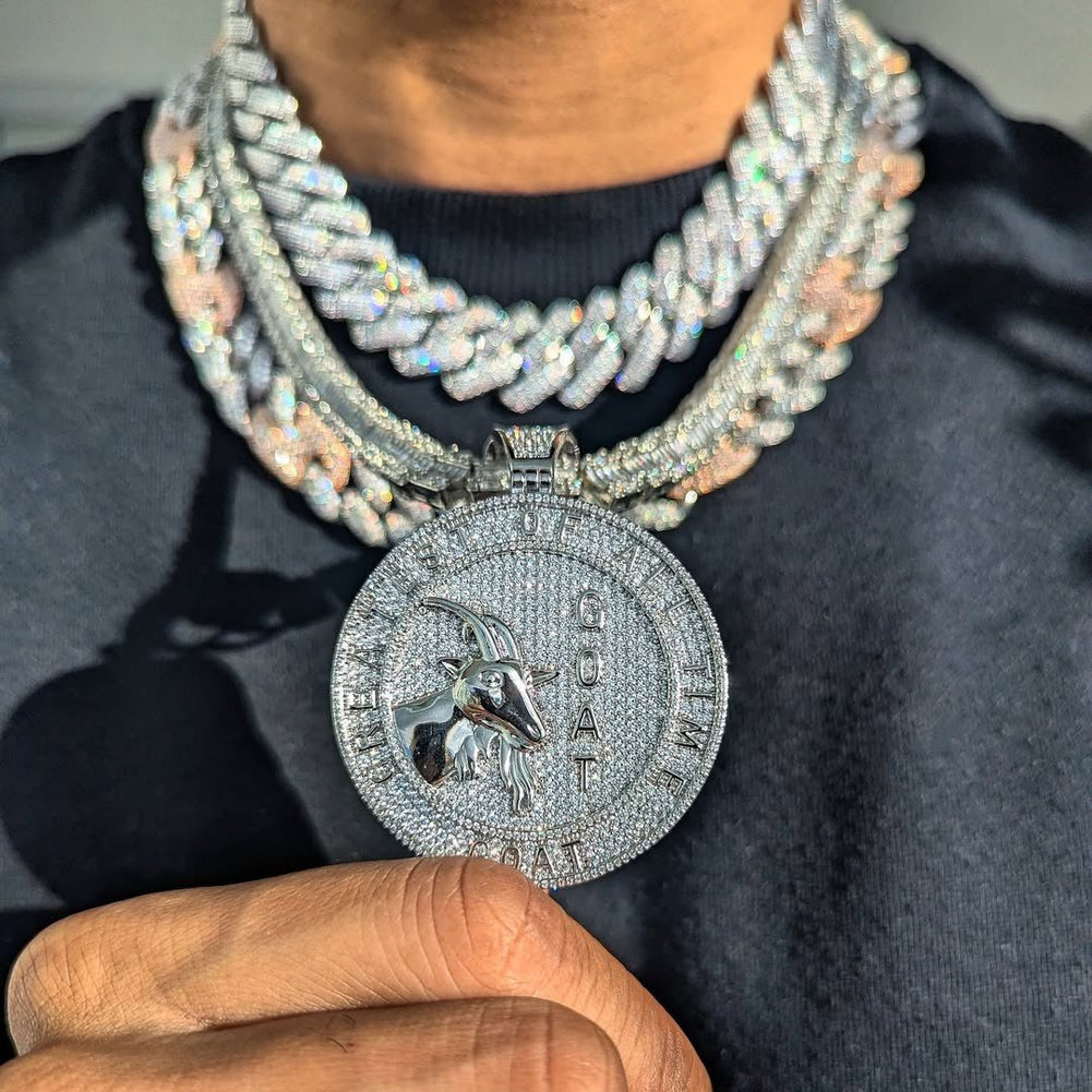 Diseñado para los amantes de la joyería urbana y los accesorios de streetwear, el colgante GOAT es tan versátil que se puede combinar con cadenas de oro, colgantes de diamantes o con otros colgantes brillantes para un look único y personalizado. Su diseño audaz captura el espíritu del éxito y la individualidad, lo que lo hace ideal para raperos, creadores de tendencias y cualquier persona que busque ser el centro de atención.