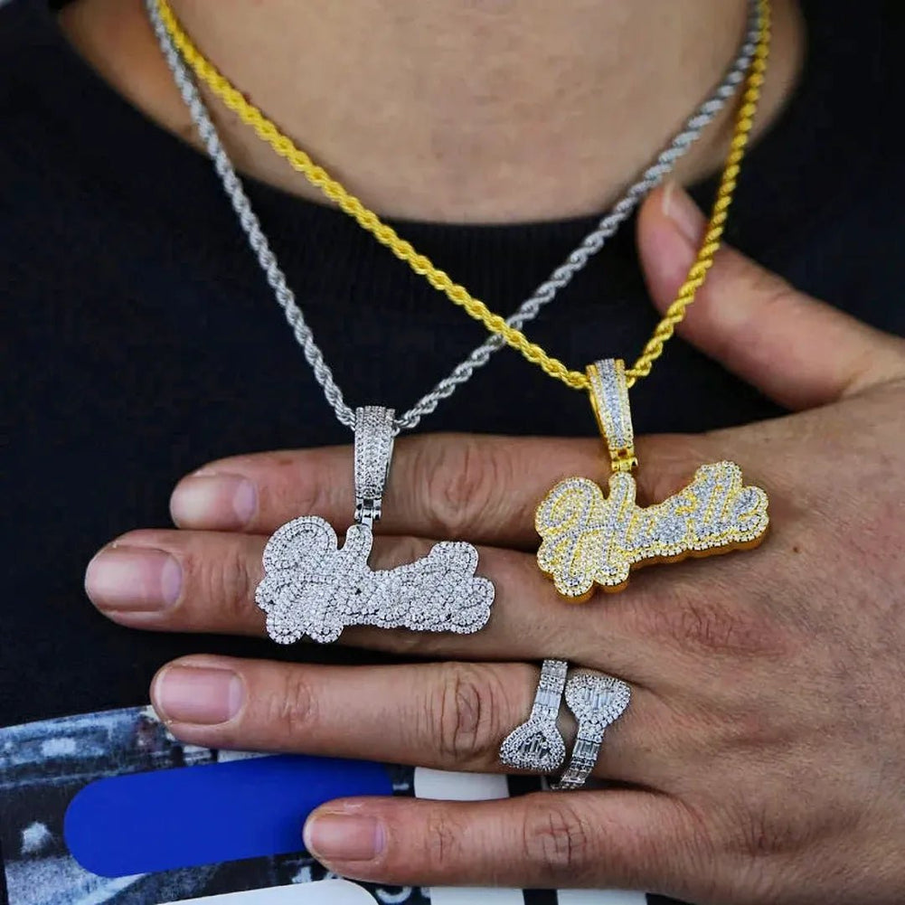 Diseñado tanto para hombres como para mujeres que disfrutan del ritmo de vida, este colgante es una pieza versátil que destaca en cualquier entorno. Ya sea para dar pasos de gigante, cerrar tratos o ir al estudio, este colgante de hip hop de alta calidad combina a la perfección con cadenas de eslabones cubanos, cadenas de tenis y cadenas de cuerda para un look versátil. Llévalo solo para un look elegante o con varias capas para llamar la atención.