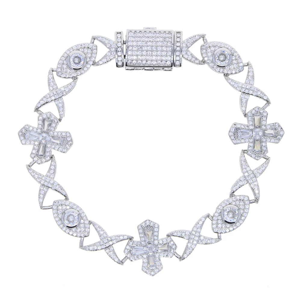 Cadena de eslabones con forma de cruz de diamantes y ojo de infinito en oro de 18 quilates