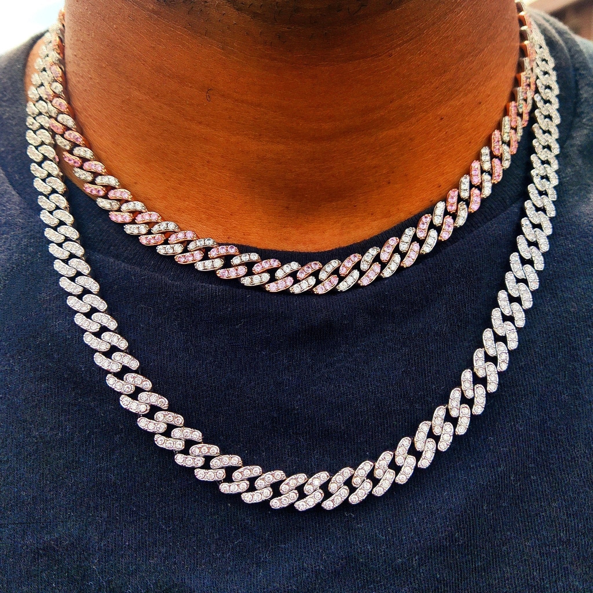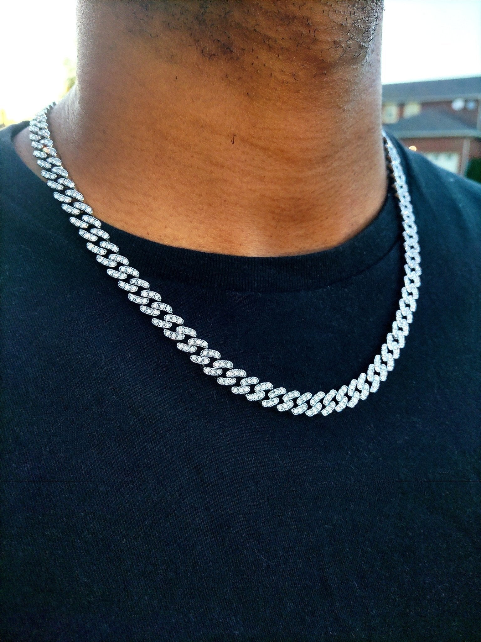 Cadena de eslabones cubanos con diamantes de moissanita de 8 mm