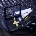 Lujo helado : una pieza llamativa que desprende un brillo intenso con la cruz de moissanita helada.