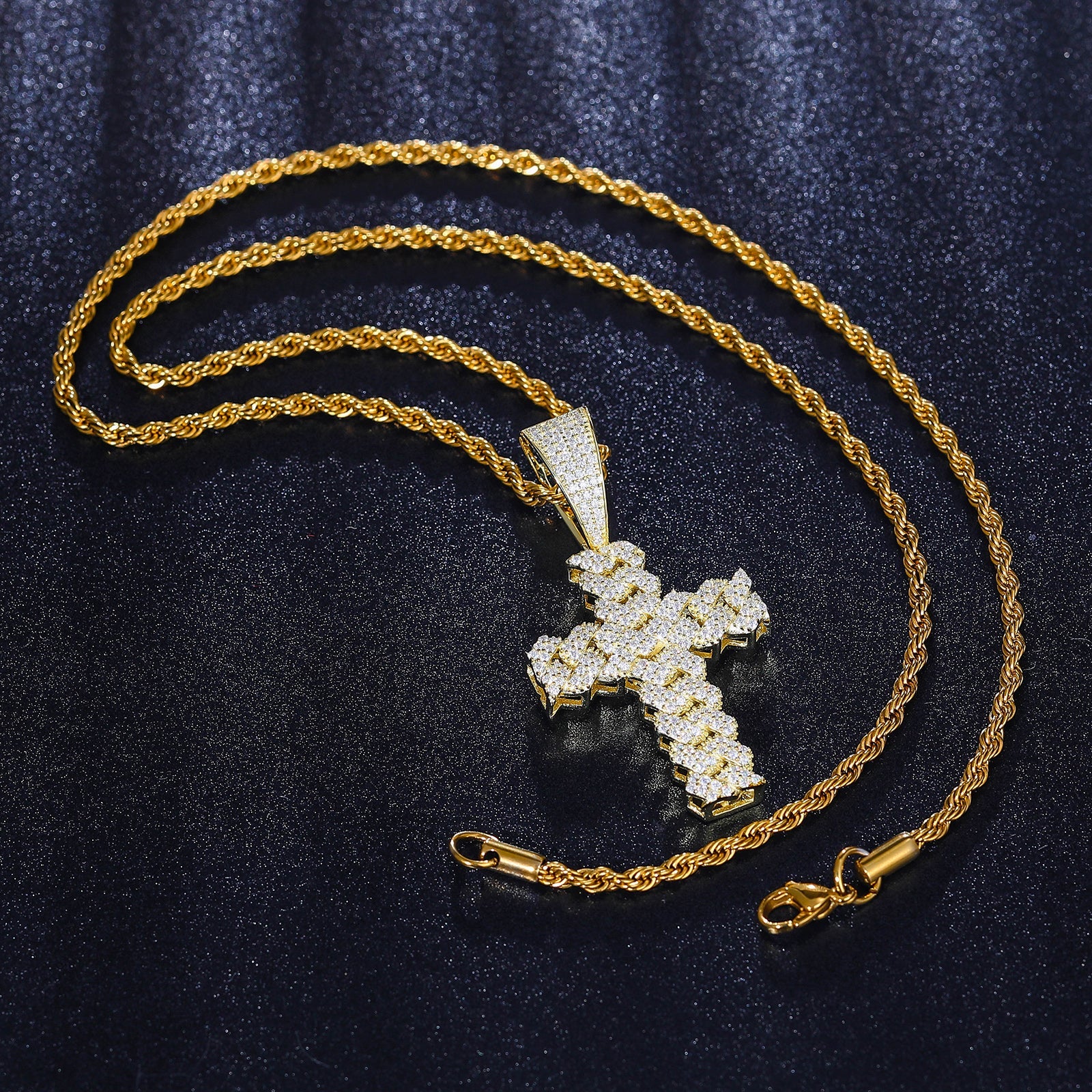 - Colgante de cruz de eslabones cubanos con diamantes y moissanita de 2,3 pulgadas en oro de 18 k o plata .925