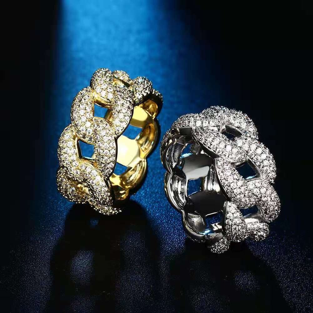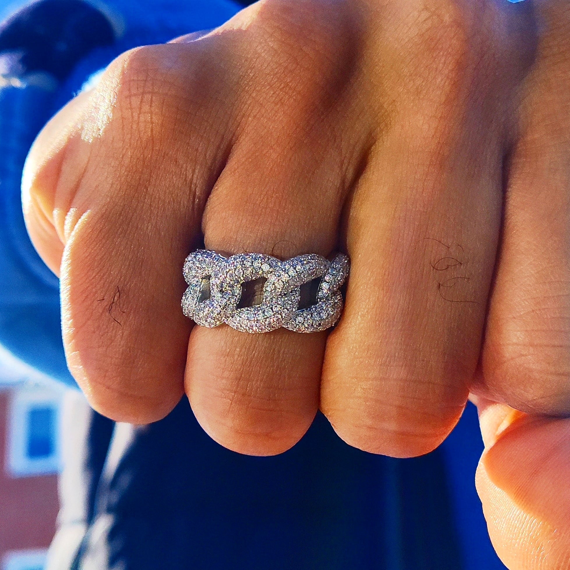 Anillo de eslabones cubanos 3D de diamantes de oro de 18 quilates