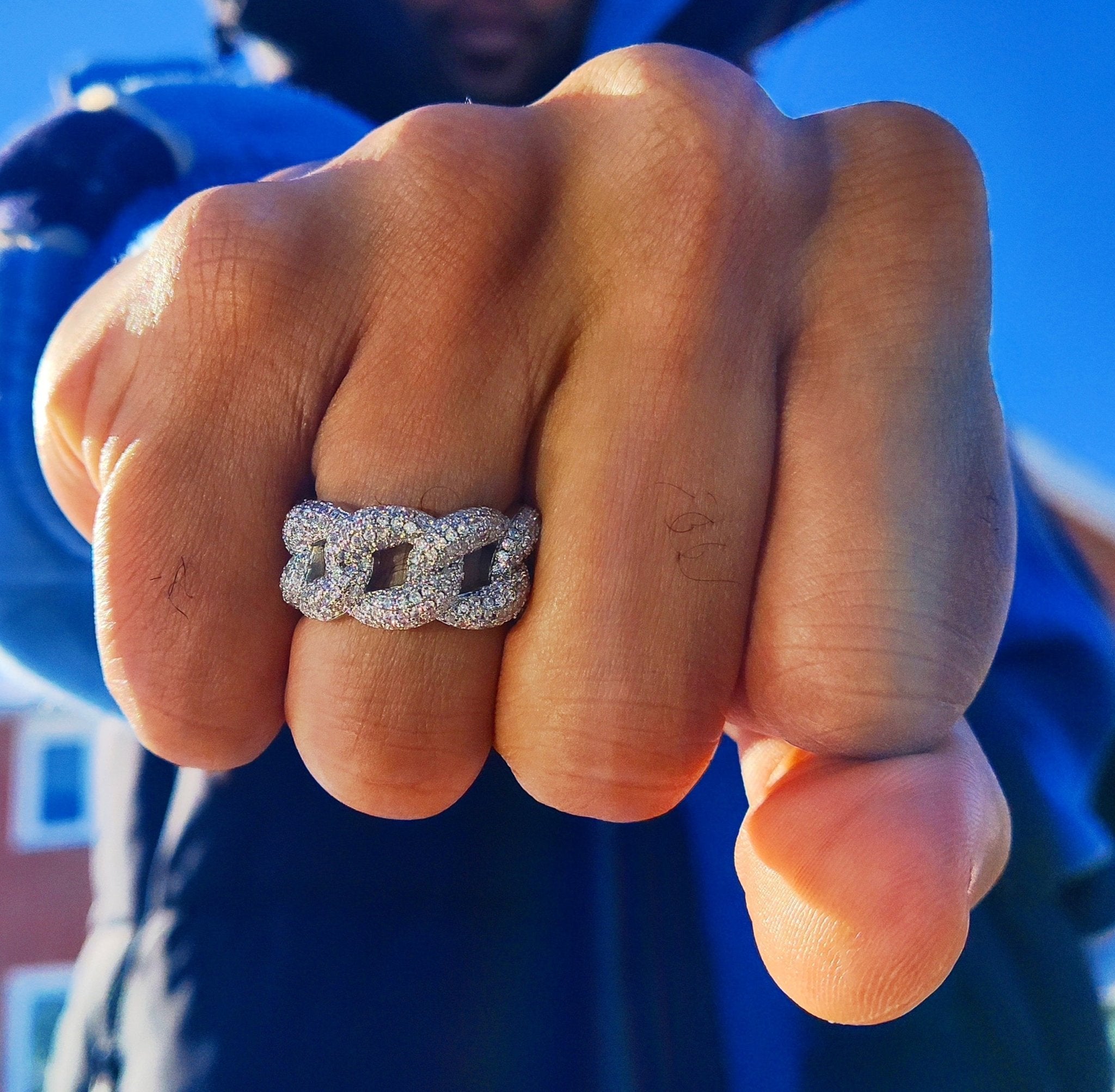 ¡Este es nuestro mejor diseño de Cuban Link Ring con diferencia! Complete su conjunto y obtenga Cuban Linked up con nuestro anillo de eslabones cubanos 3D de diamantes de oro de 18 quilates. Fabricado con baño de oro de 18 quilates de alta calidad sumergido 5 veces para un brillo duradero y duradero. Cada diamante VVS CZ está engastado a mano para un brillo seguro.