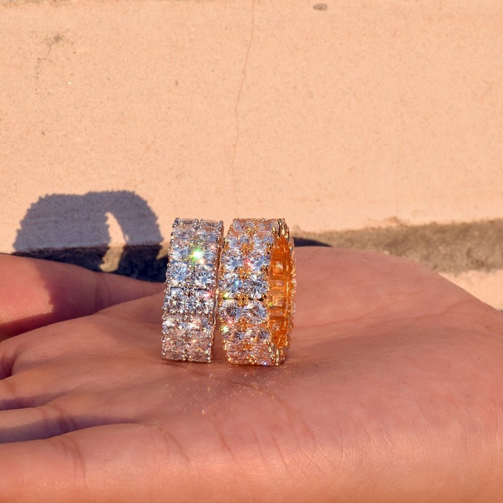 ¡El anillo de diamantes de dos bandas es simplemente increíble! Todos los diamantes rodean la banda, y como uno nunca es suficiente, duplicamos la banda para ofrecerte aún más diamantes. ¡Exagera con los diamantes con el anillo de diamantes de dos bandas!