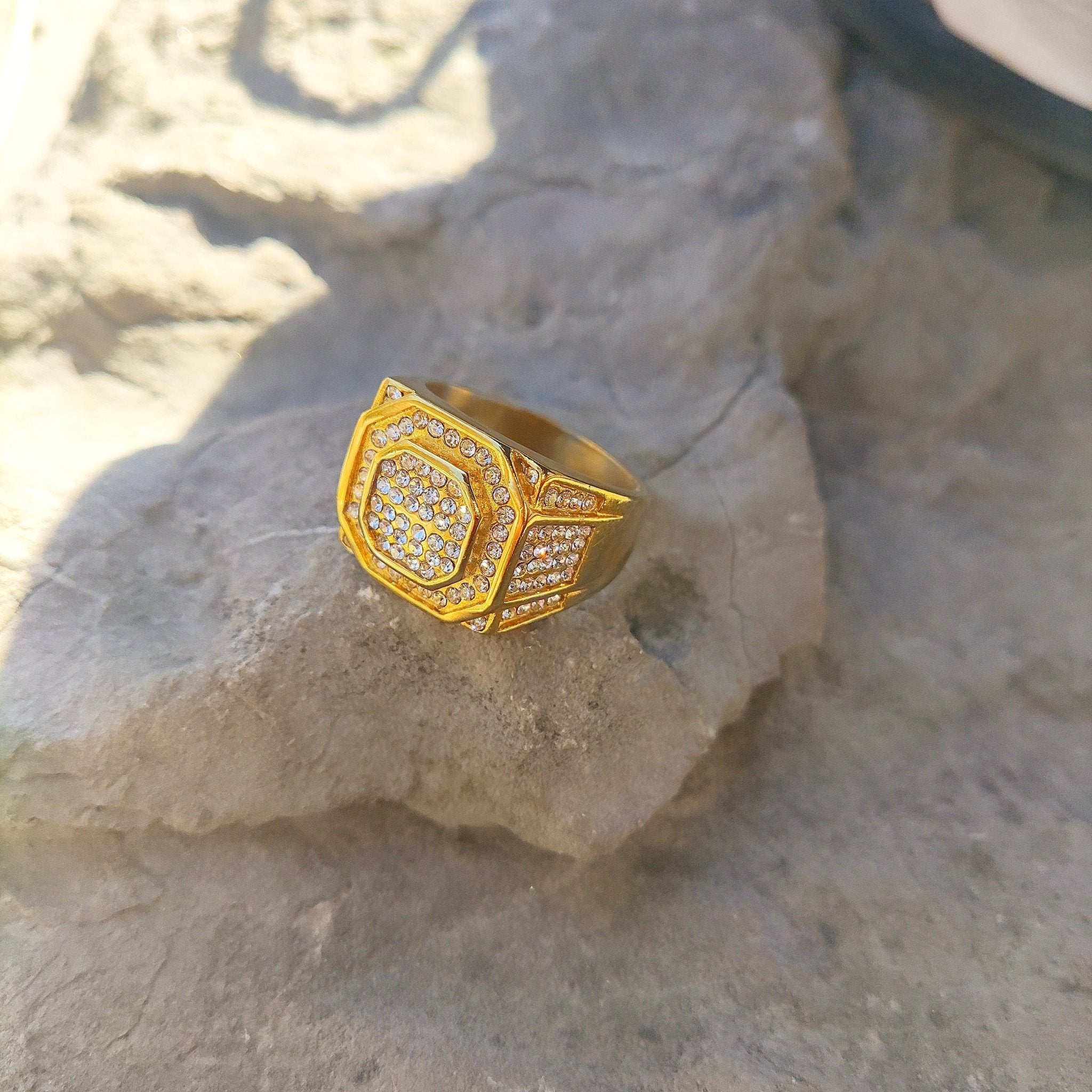 El anillo Icy Pinky es perfecto para cualquier ocasión, es lo suficientemente elegante como para usarlo con un traje o una camisa de vestir y lo suficientemente informal como para llamar la atención todos los días de la semana, obtenga el suyo y deje que comience el espectáculo de luces. Hecho con un baño de oro de 18 quilates de alta calidad, luego se colocan cuidadosamente diamantes cz en cada centímetro de este impresionante anillo.